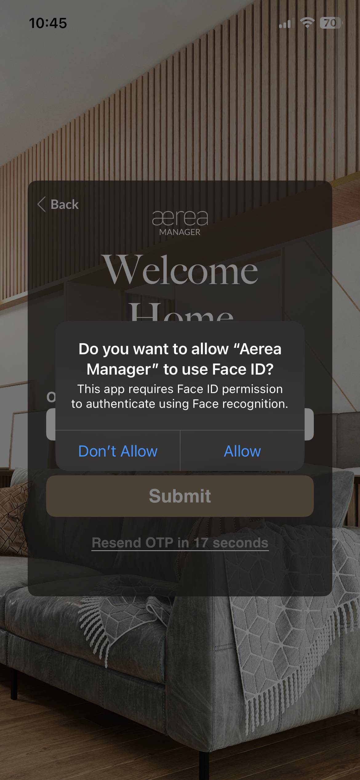 The user is prompted to enable biometric login for future logins after the successful OTP verification