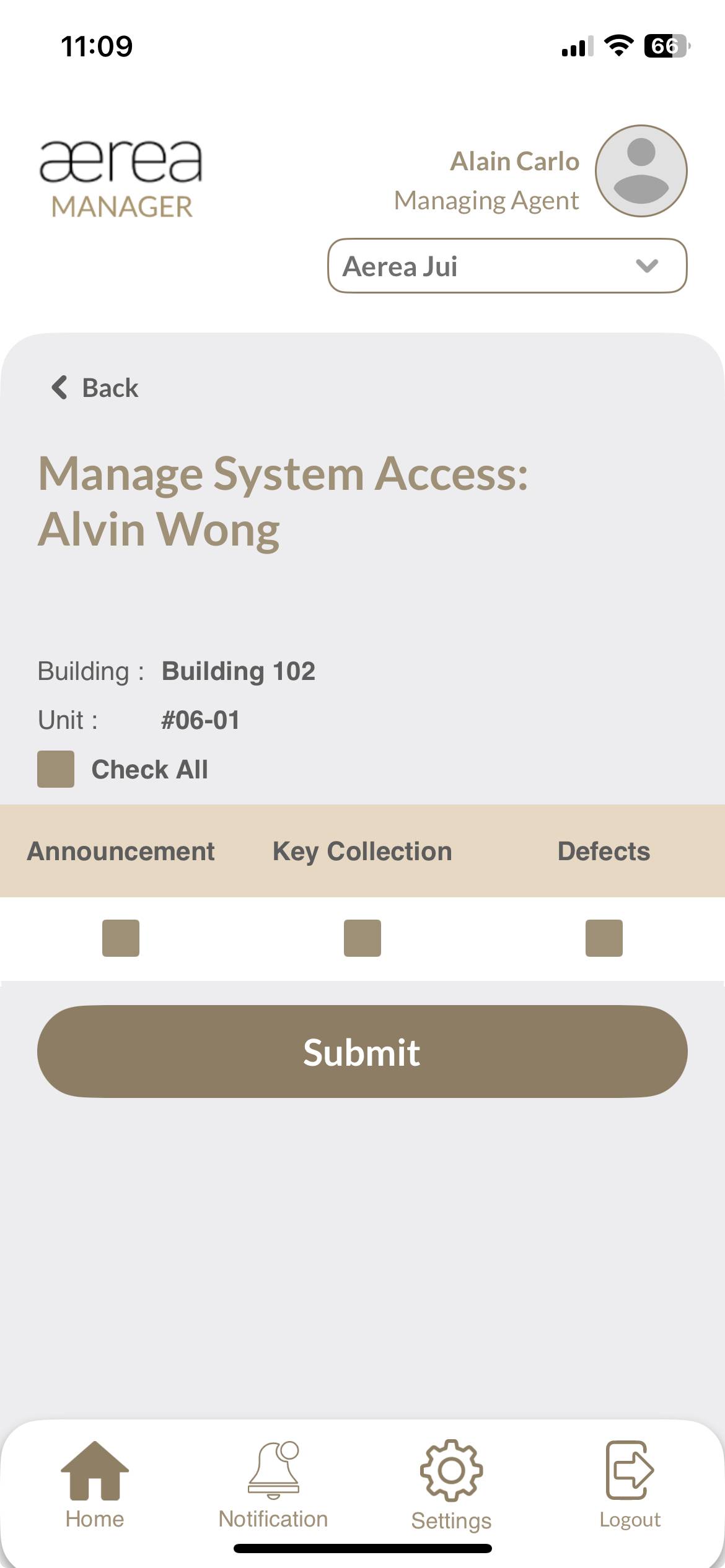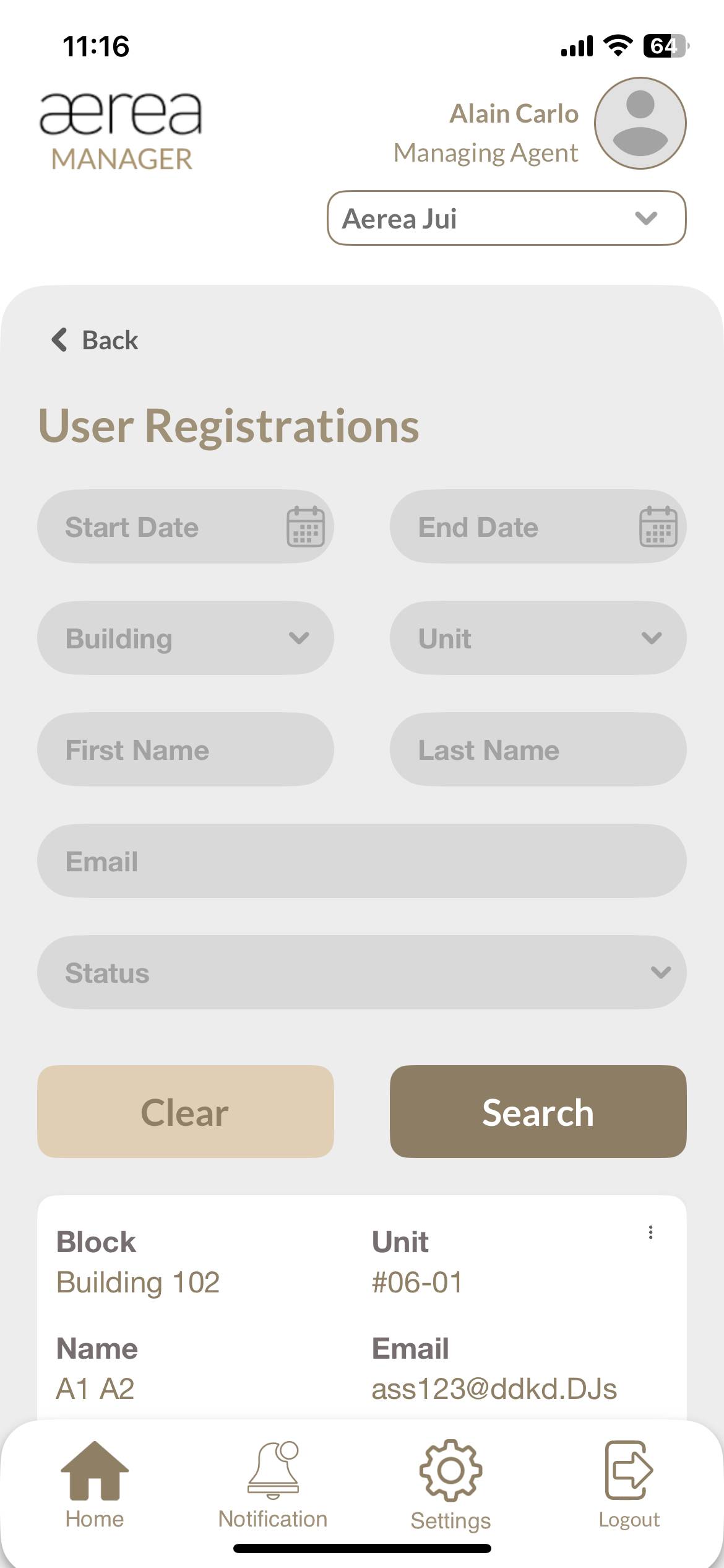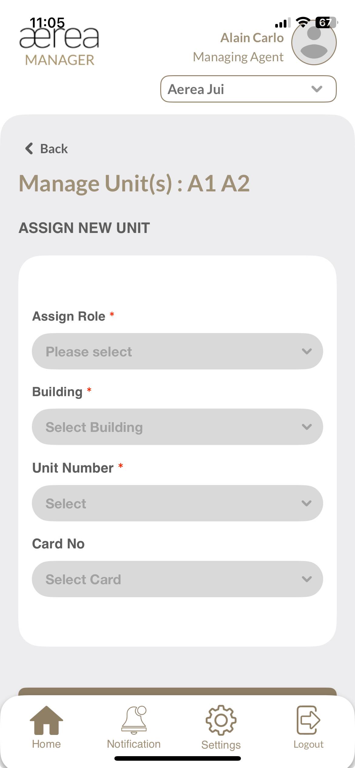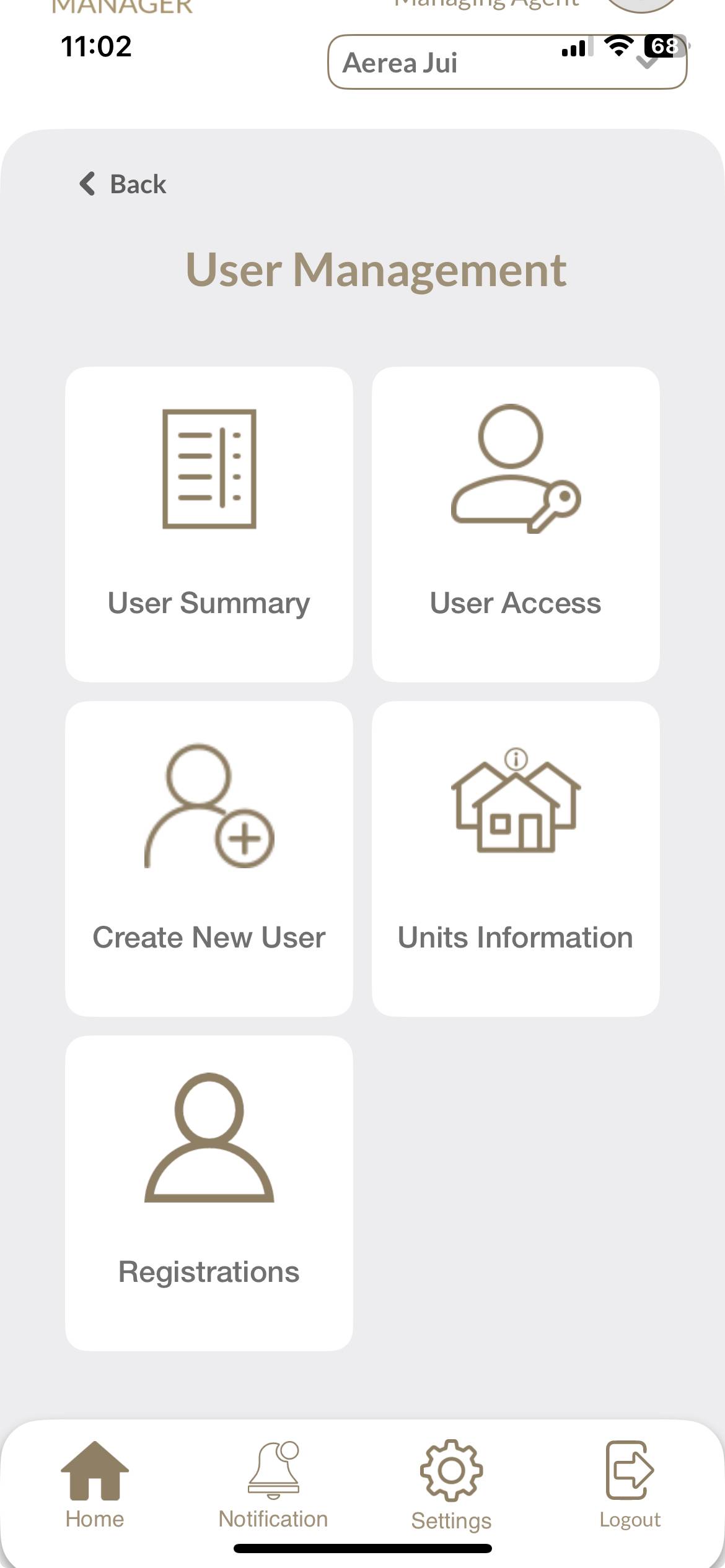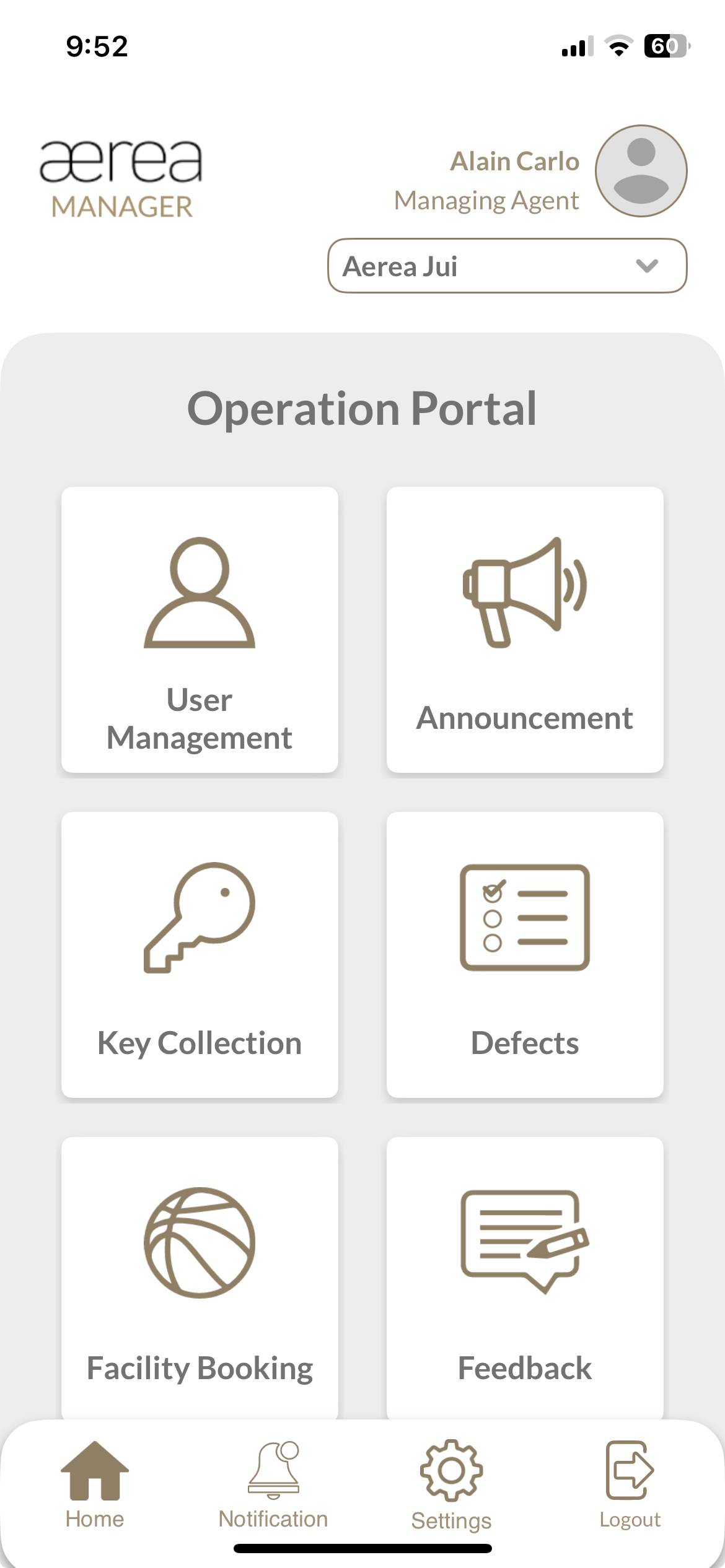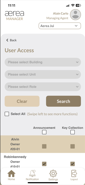 Users with managing roles can login via the Aerea Manager app. They can manage multiple properties with a single login. Select the country your condo is located in