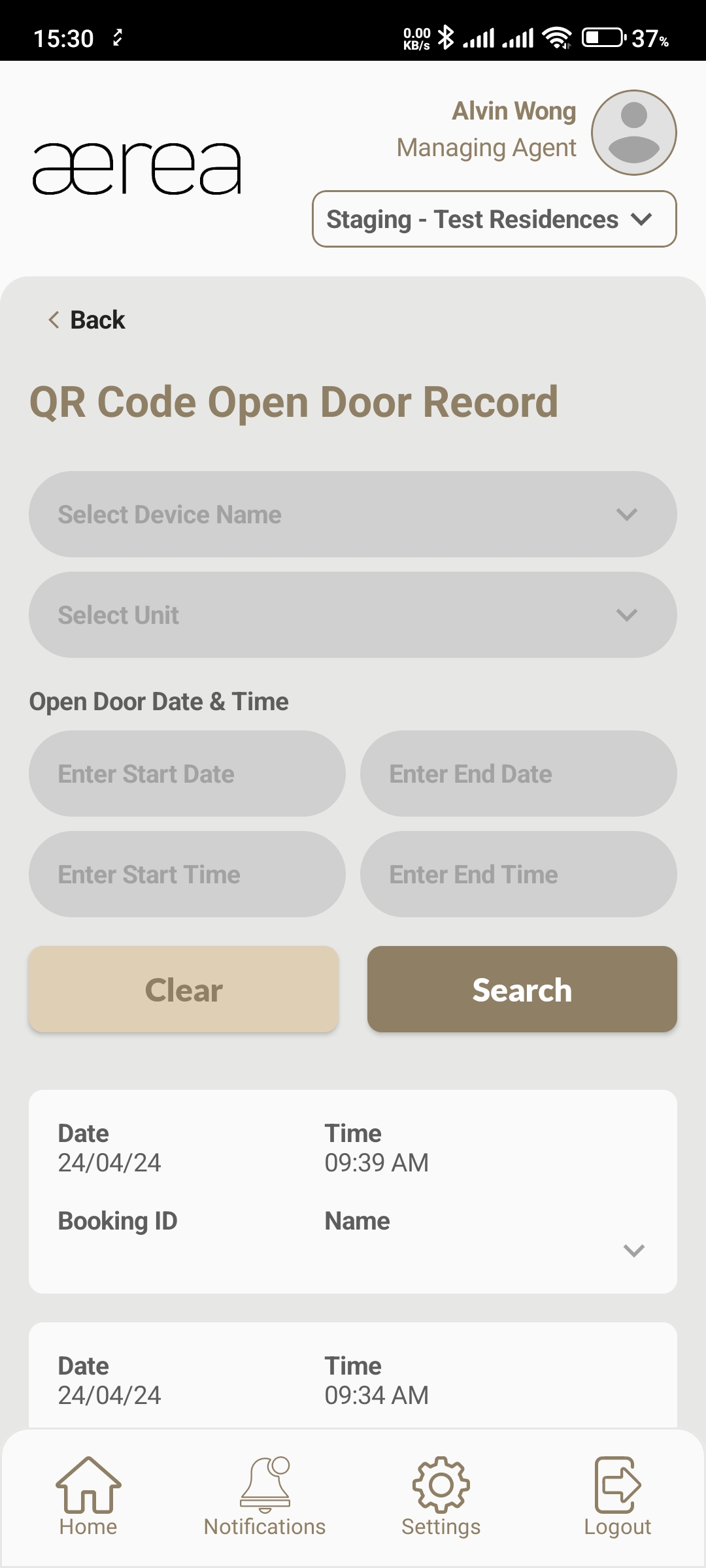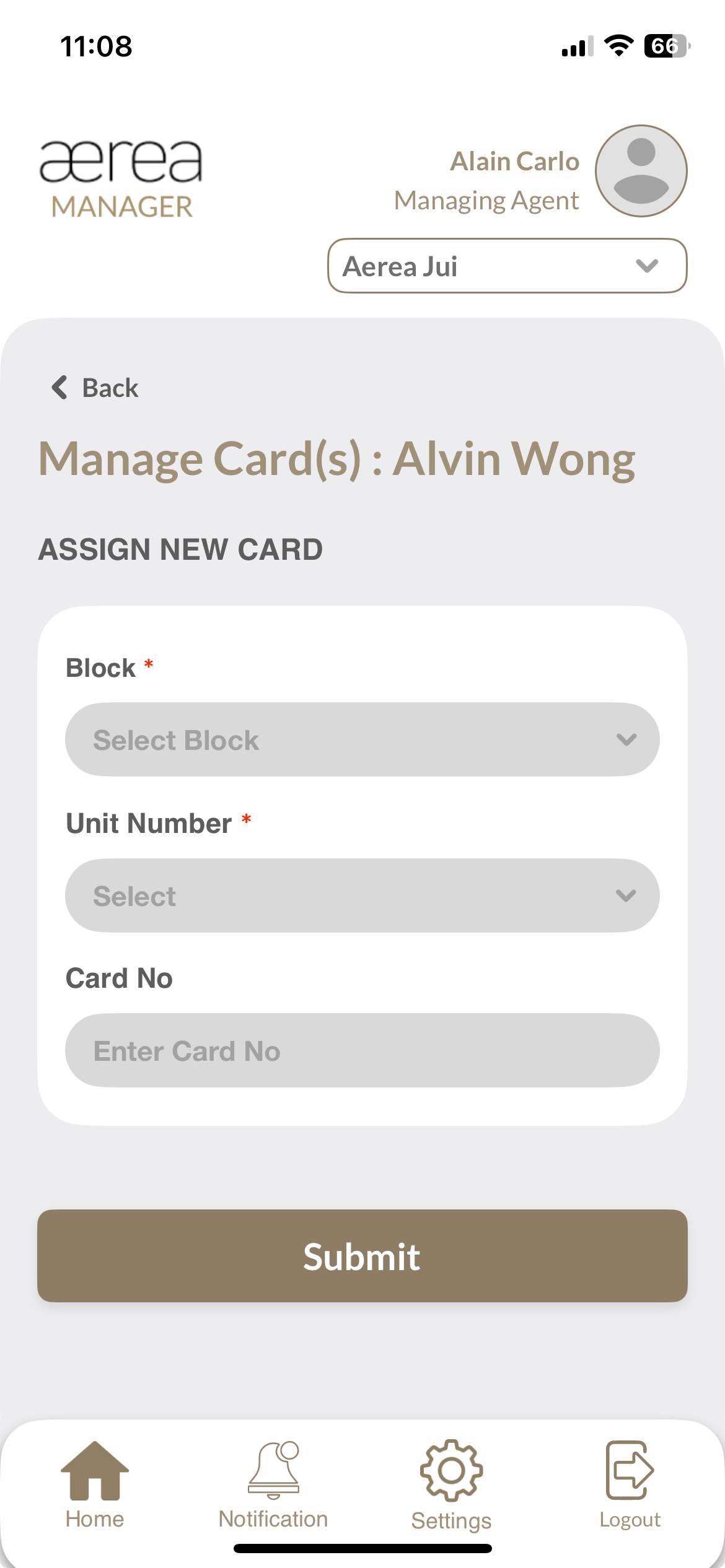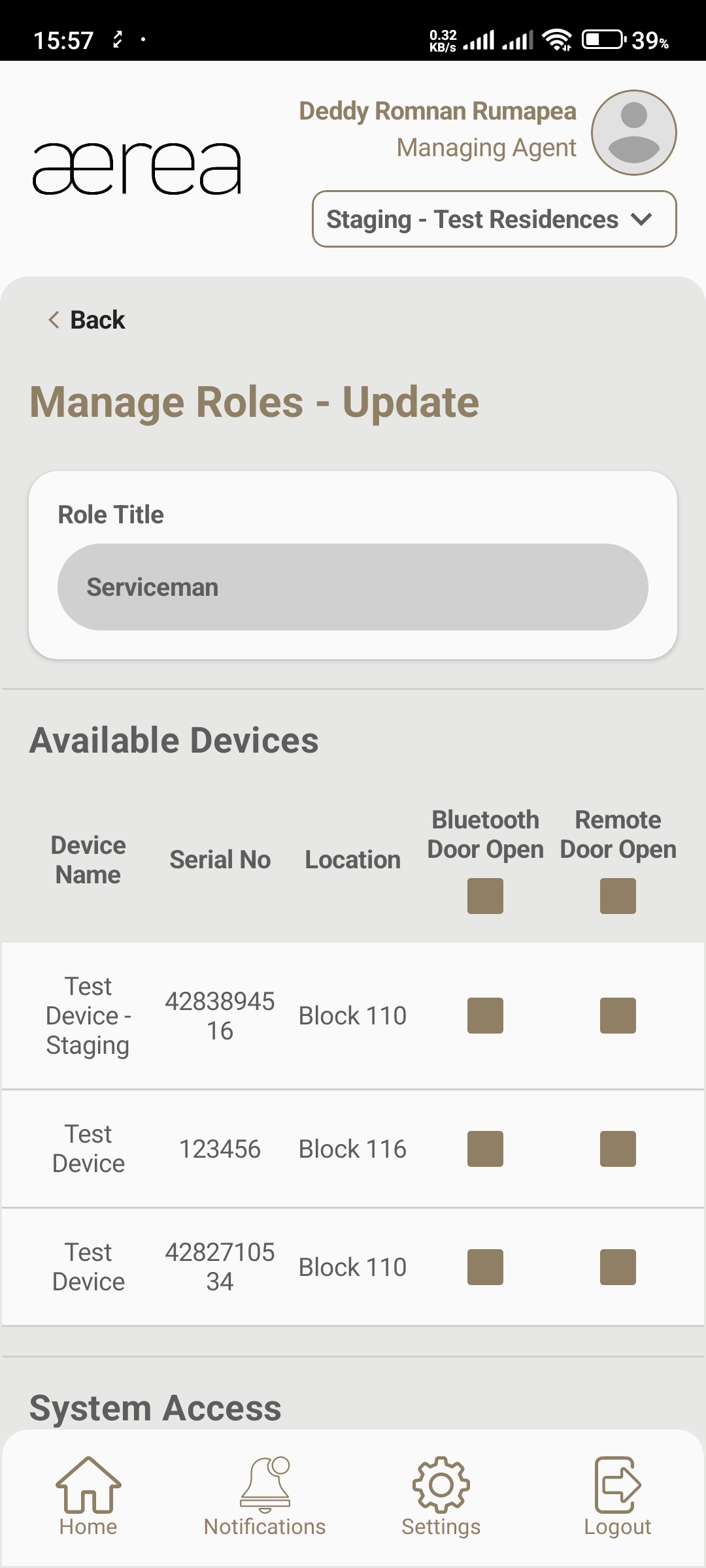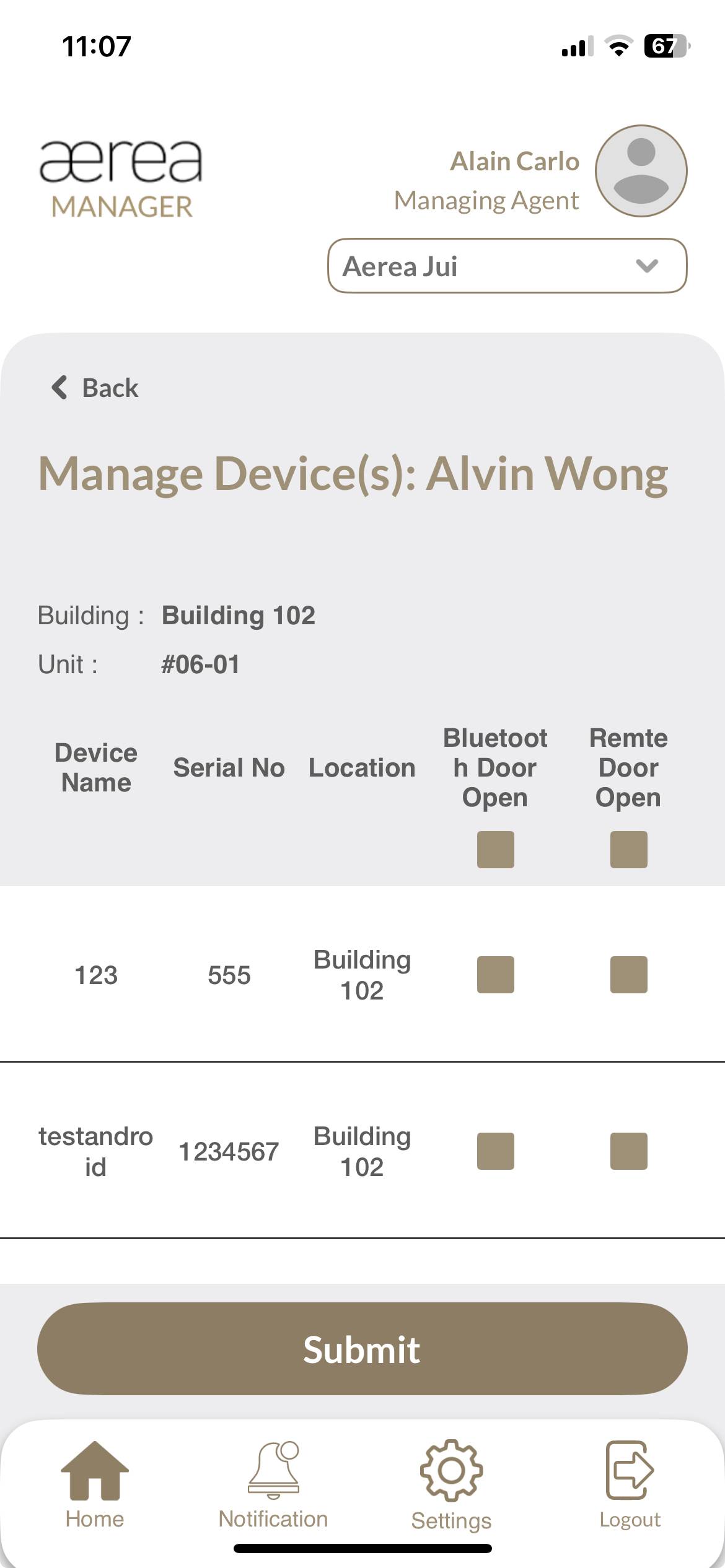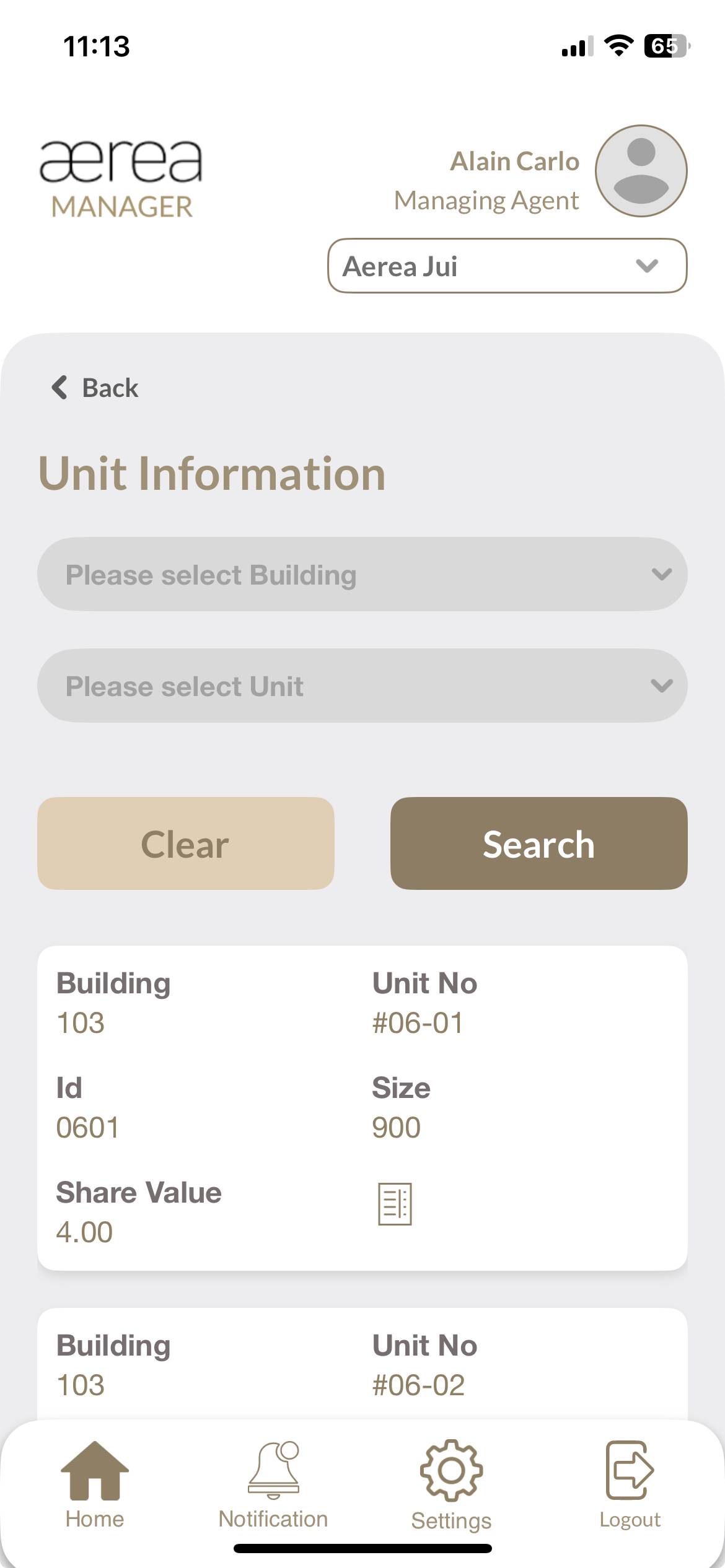 Users with managing roles can login via the Aerea Manager app. They can manage multiple properties with a single login. Select the country your condo is located in