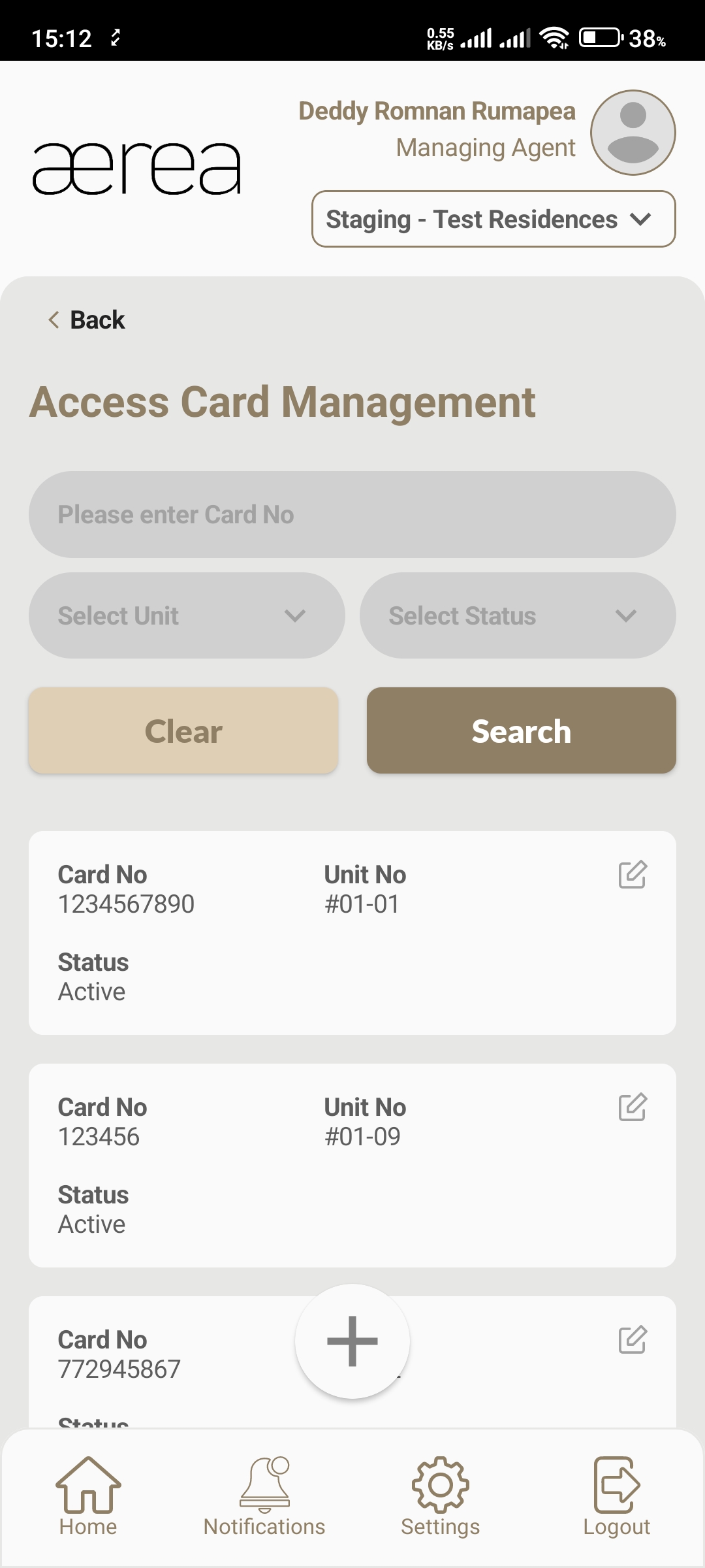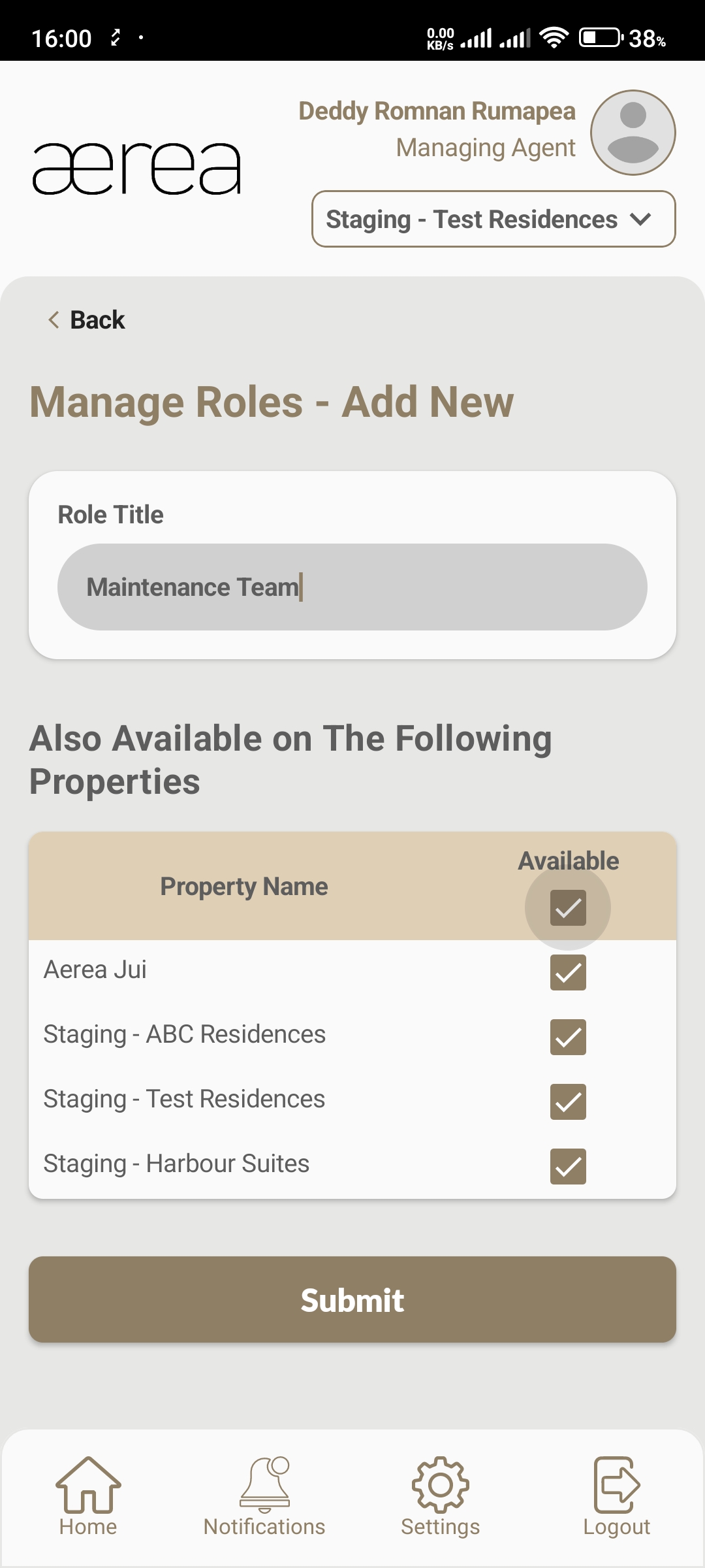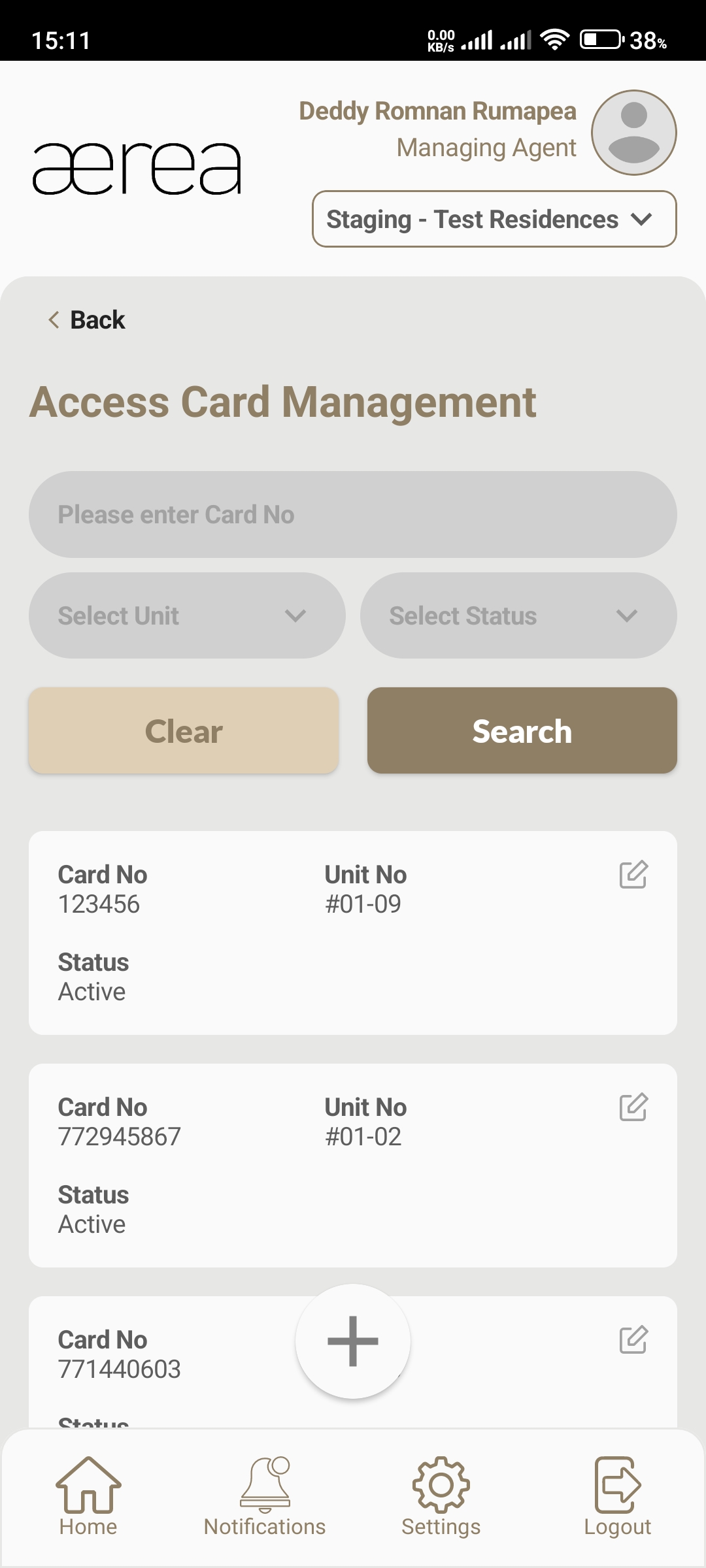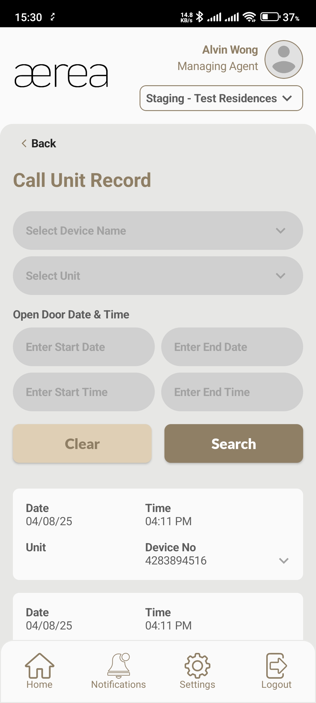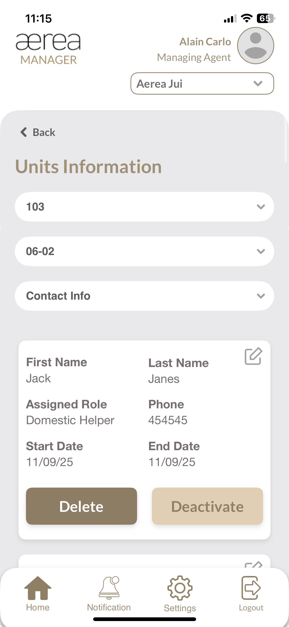 Users with managing roles can login via the Aerea Manager app. They can manage multiple properties with a single login. Select the country your condo is located in