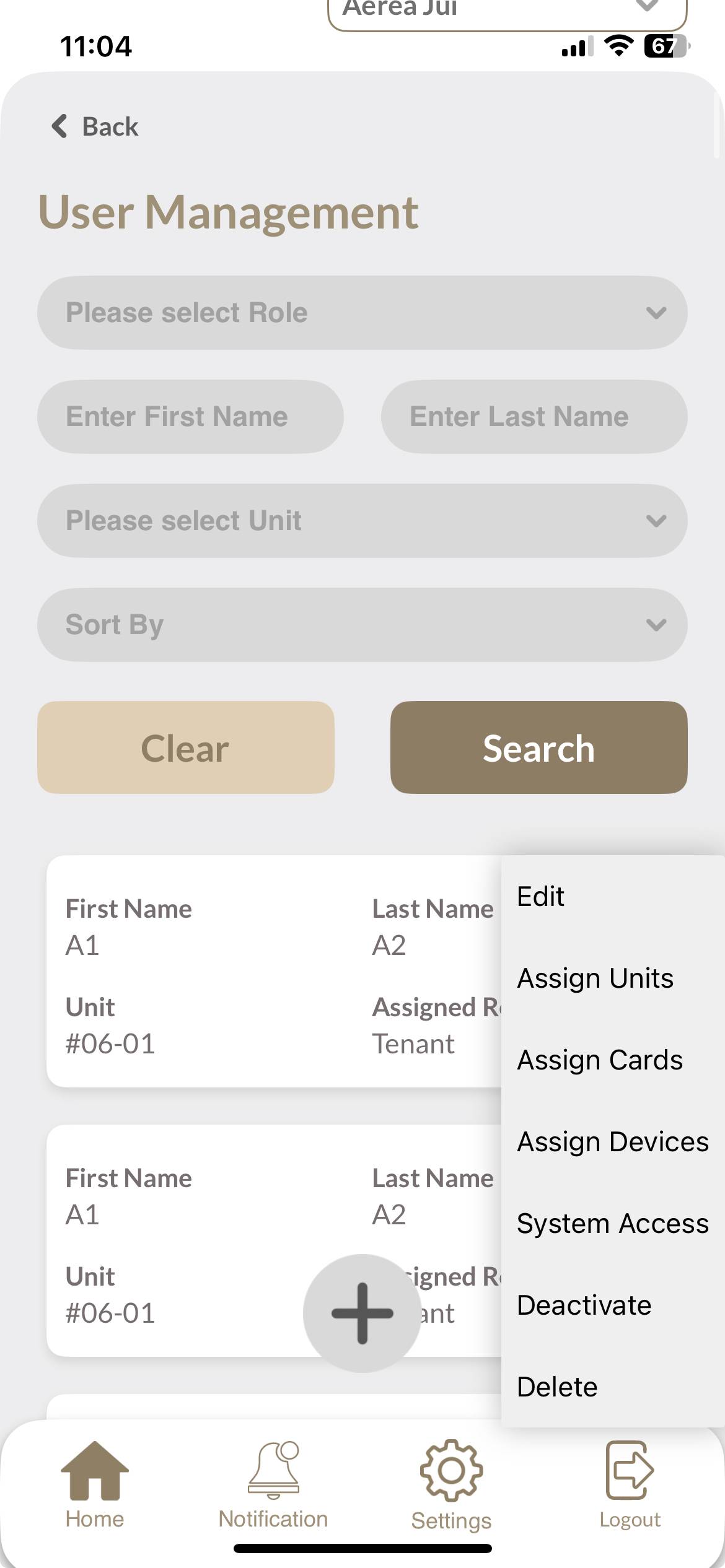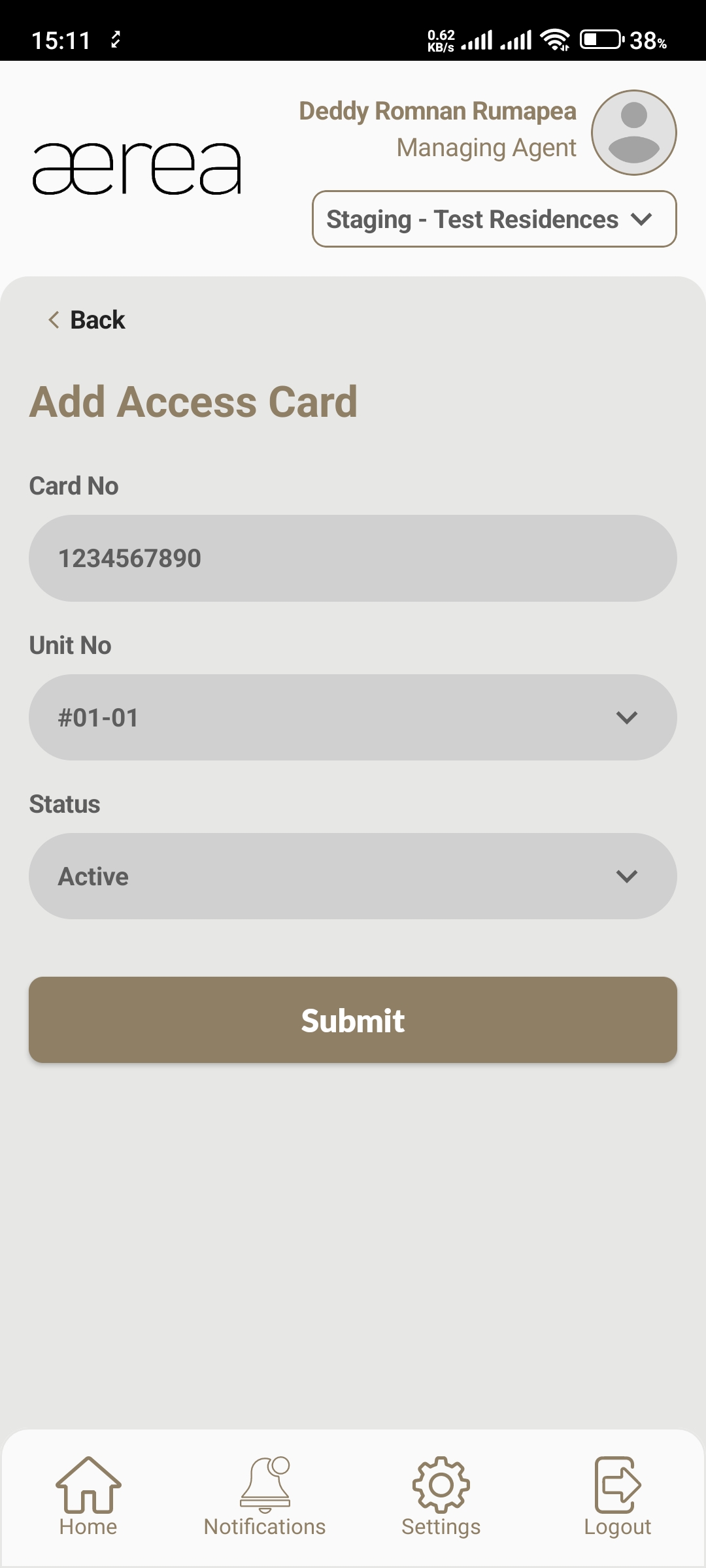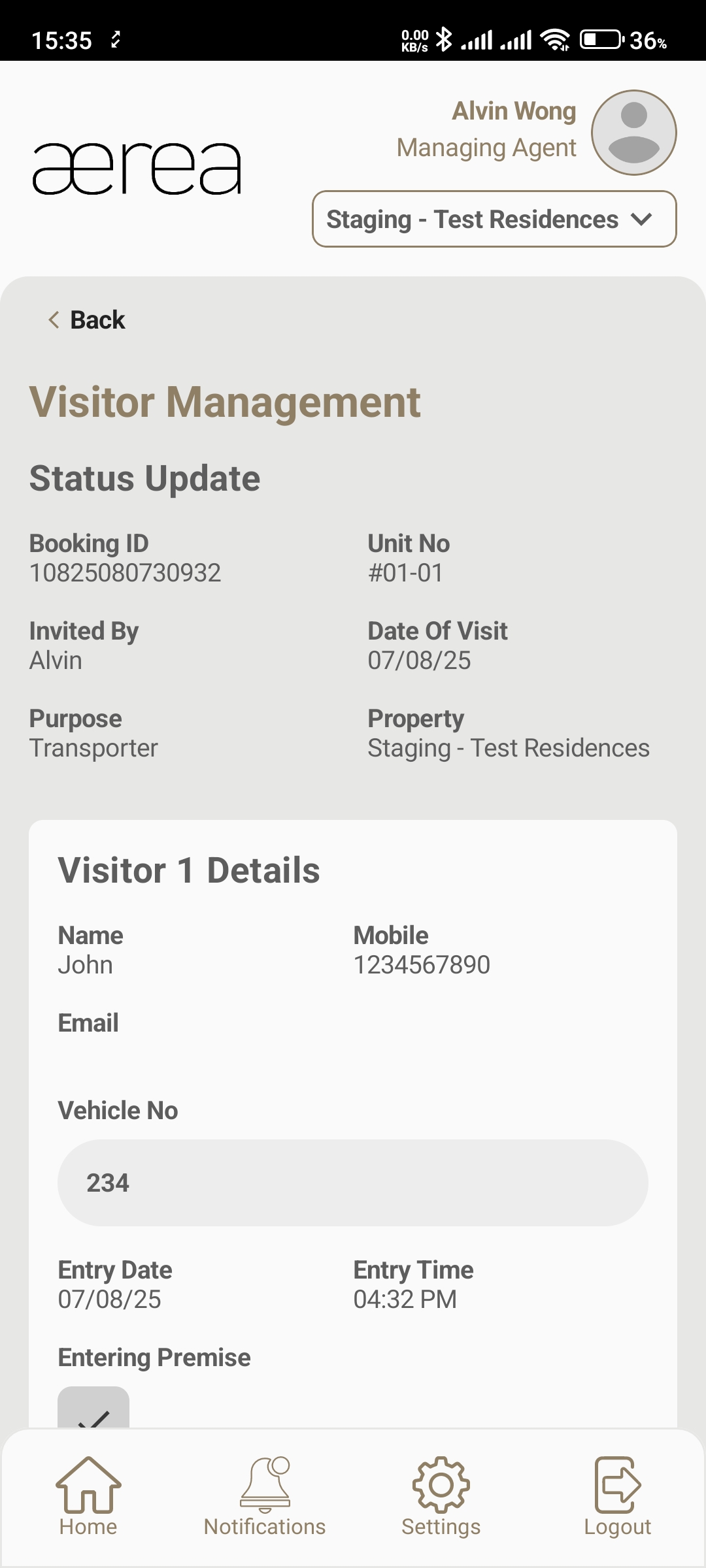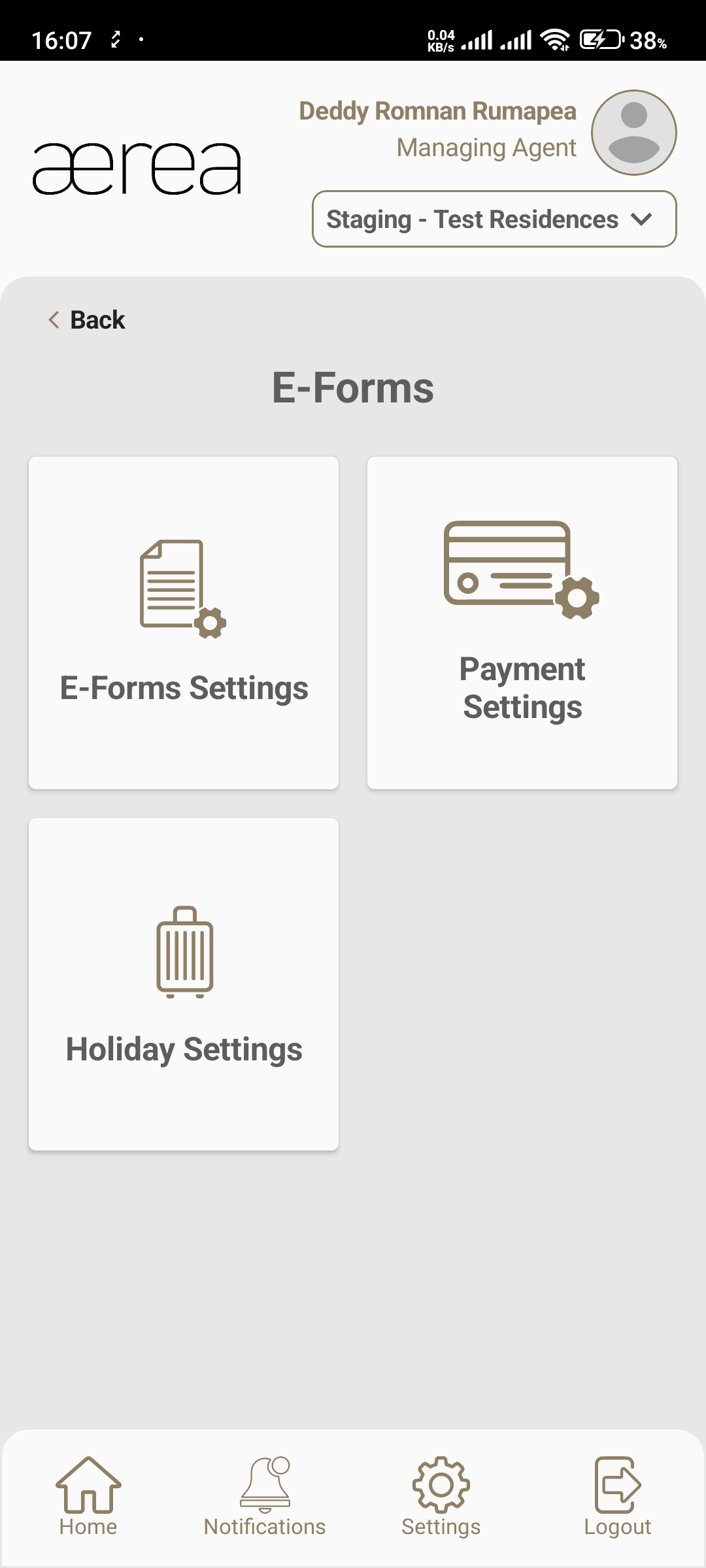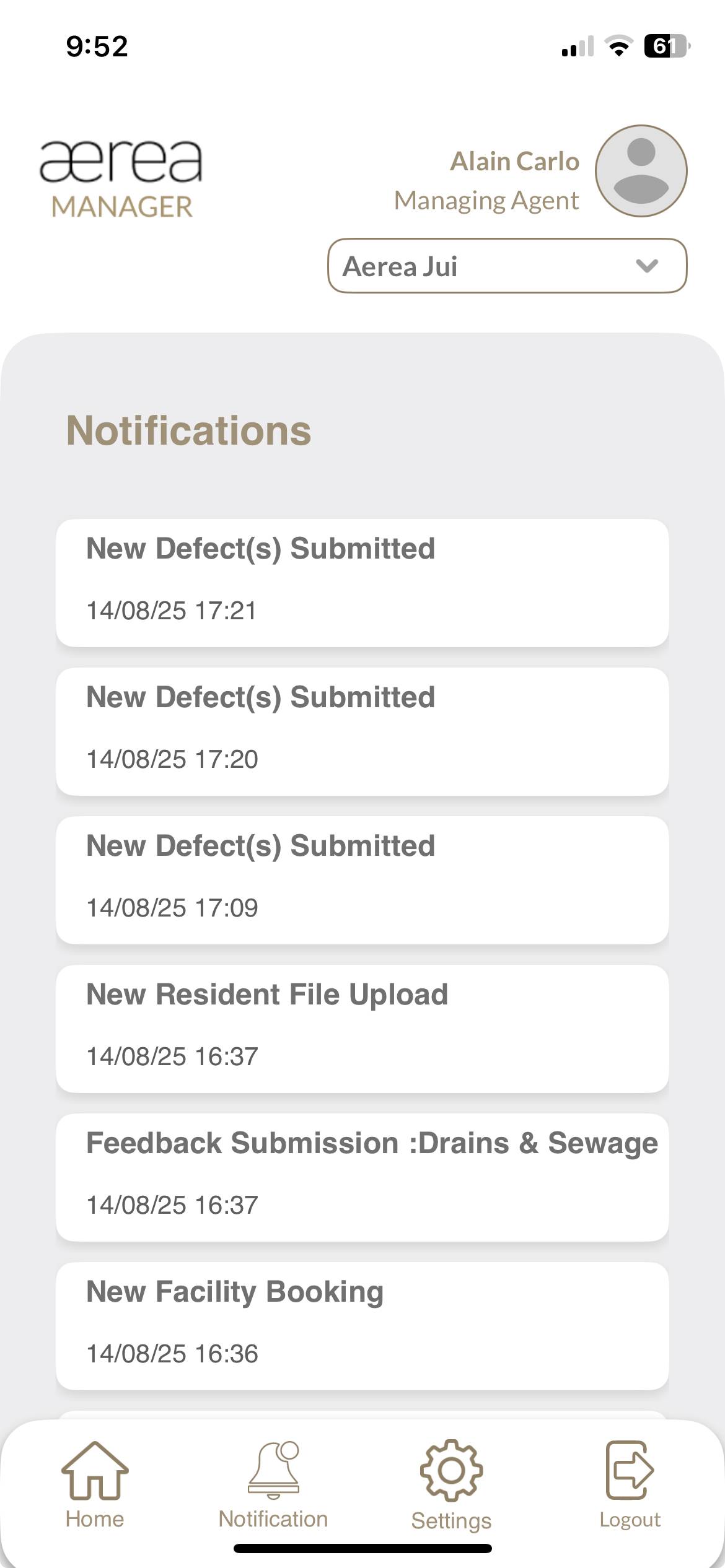 Users with managing roles can login via the Aerea Manager app. They can manage multiple properties with a single login. Select the country your condo is located in