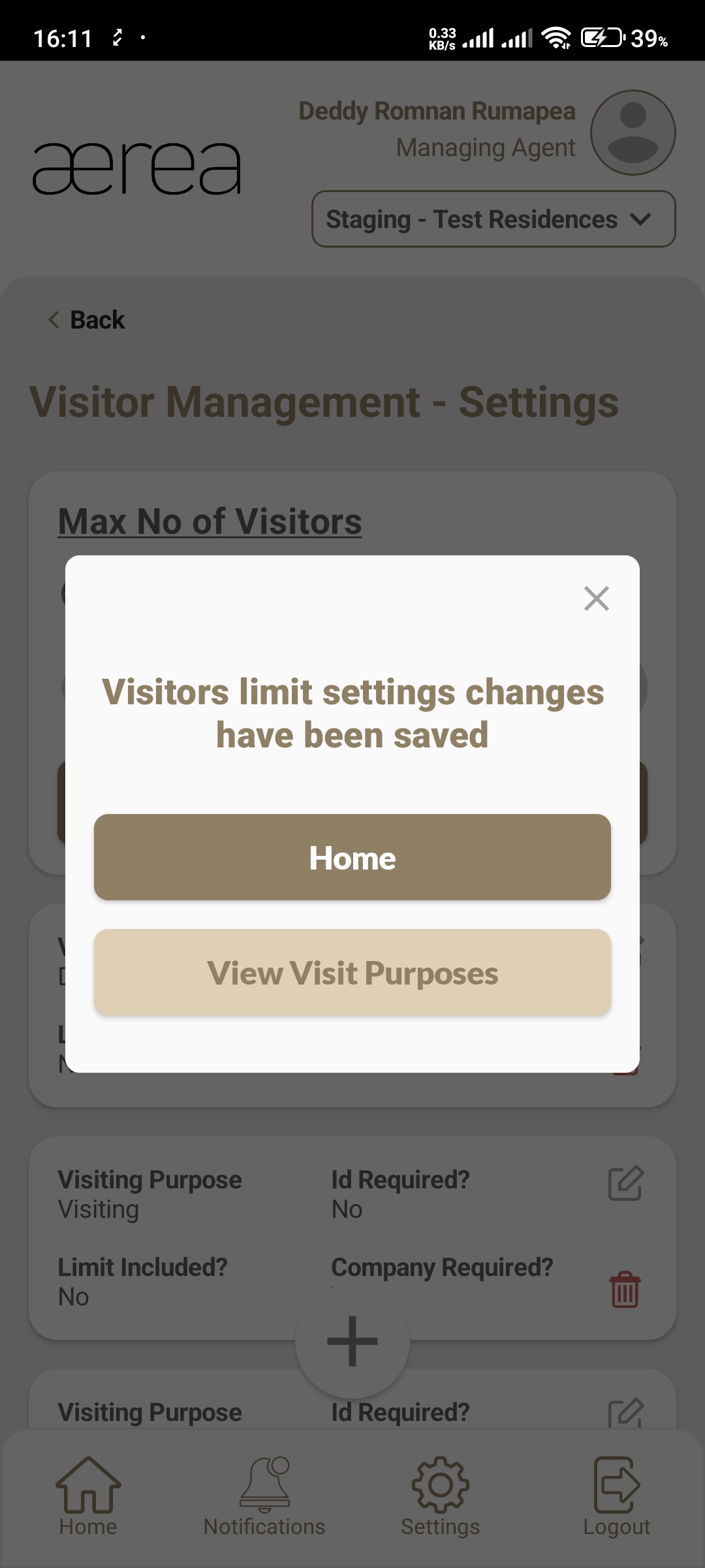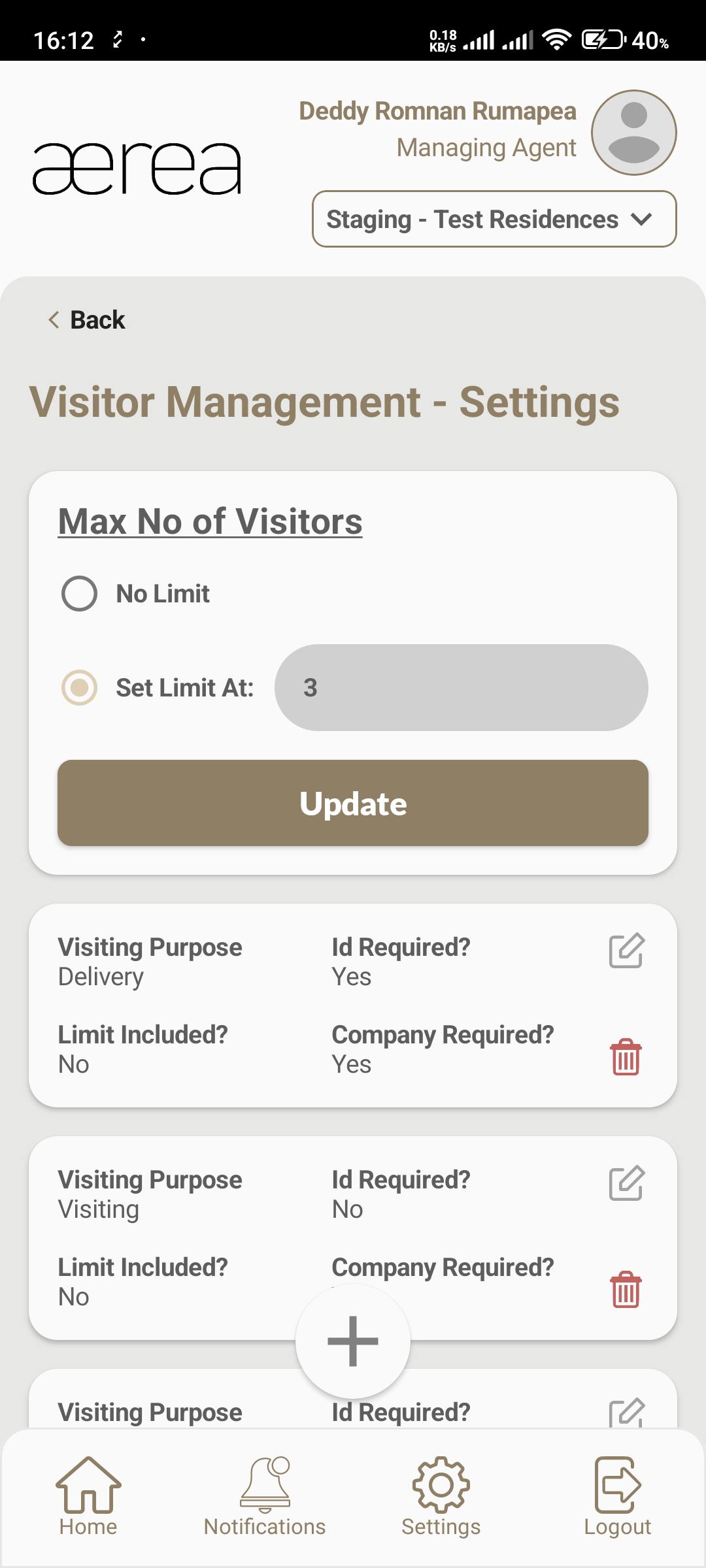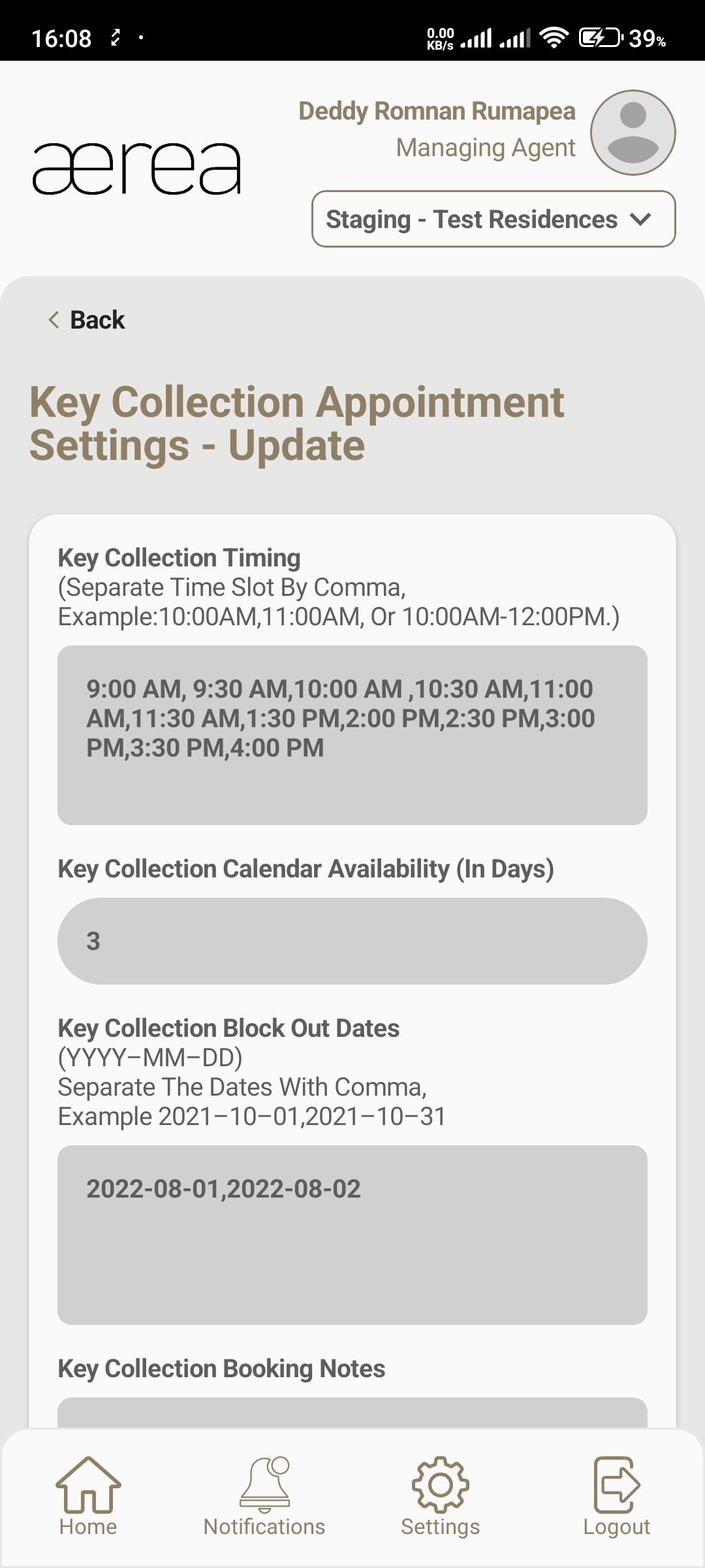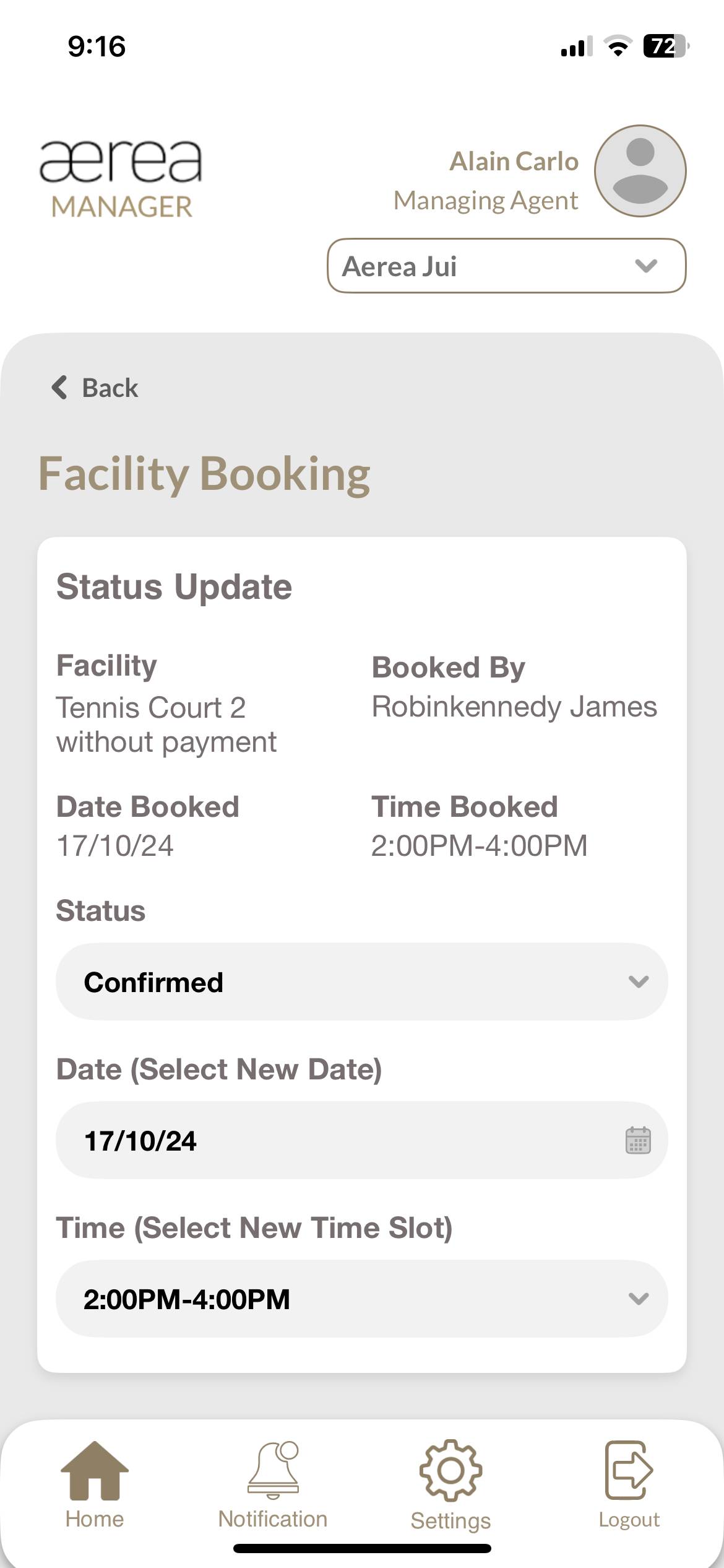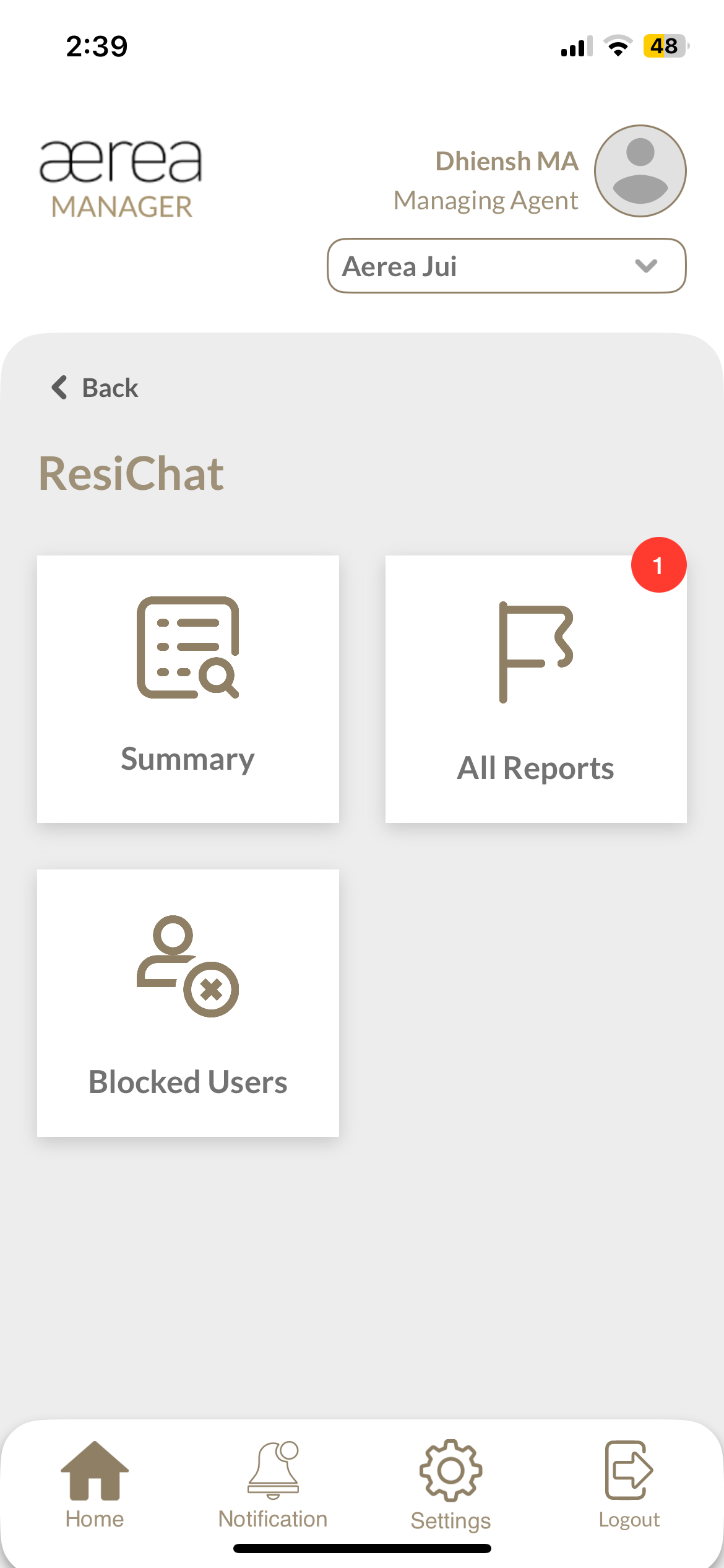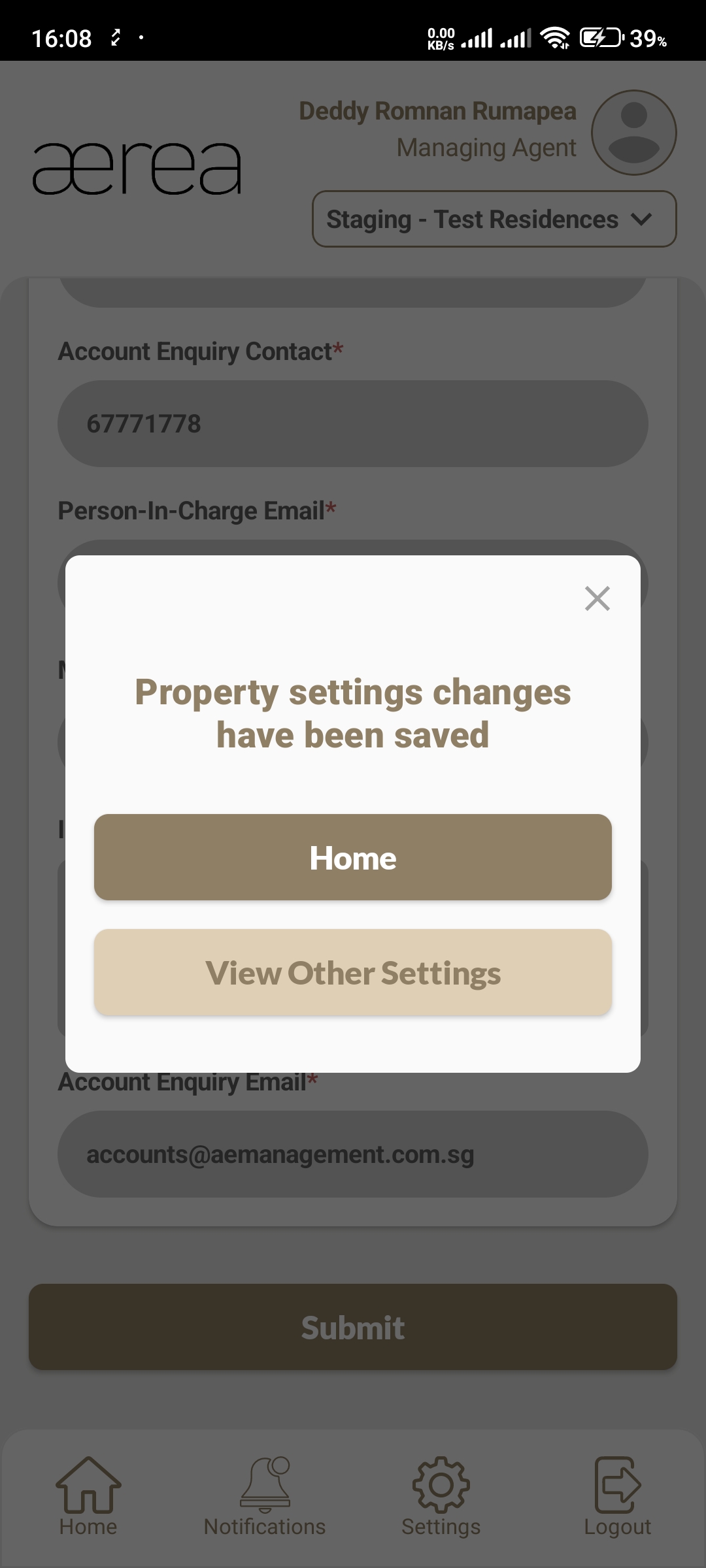 Users with managing roles can login via the Aerea Manager app. They can manage multiple properties with a single login. Select the country your condo is located in