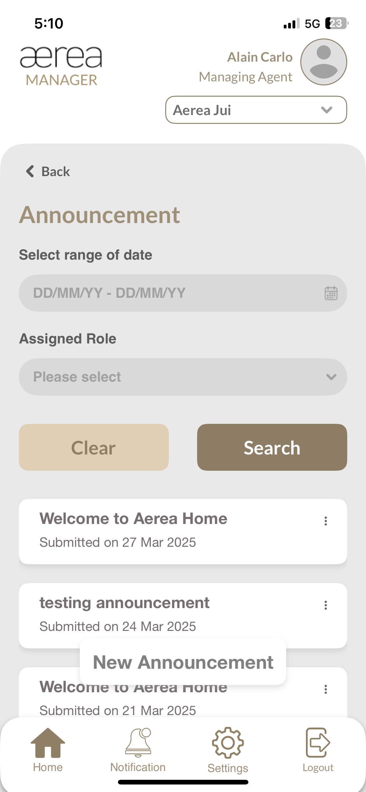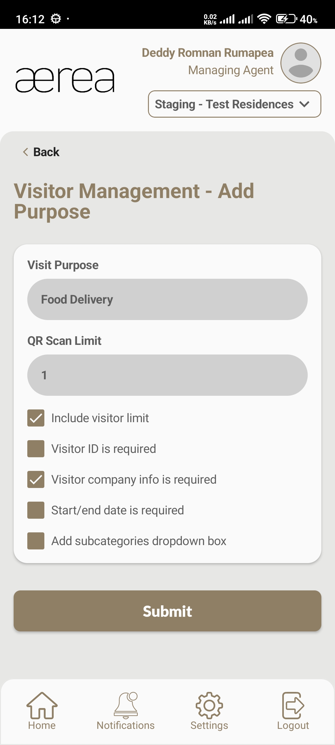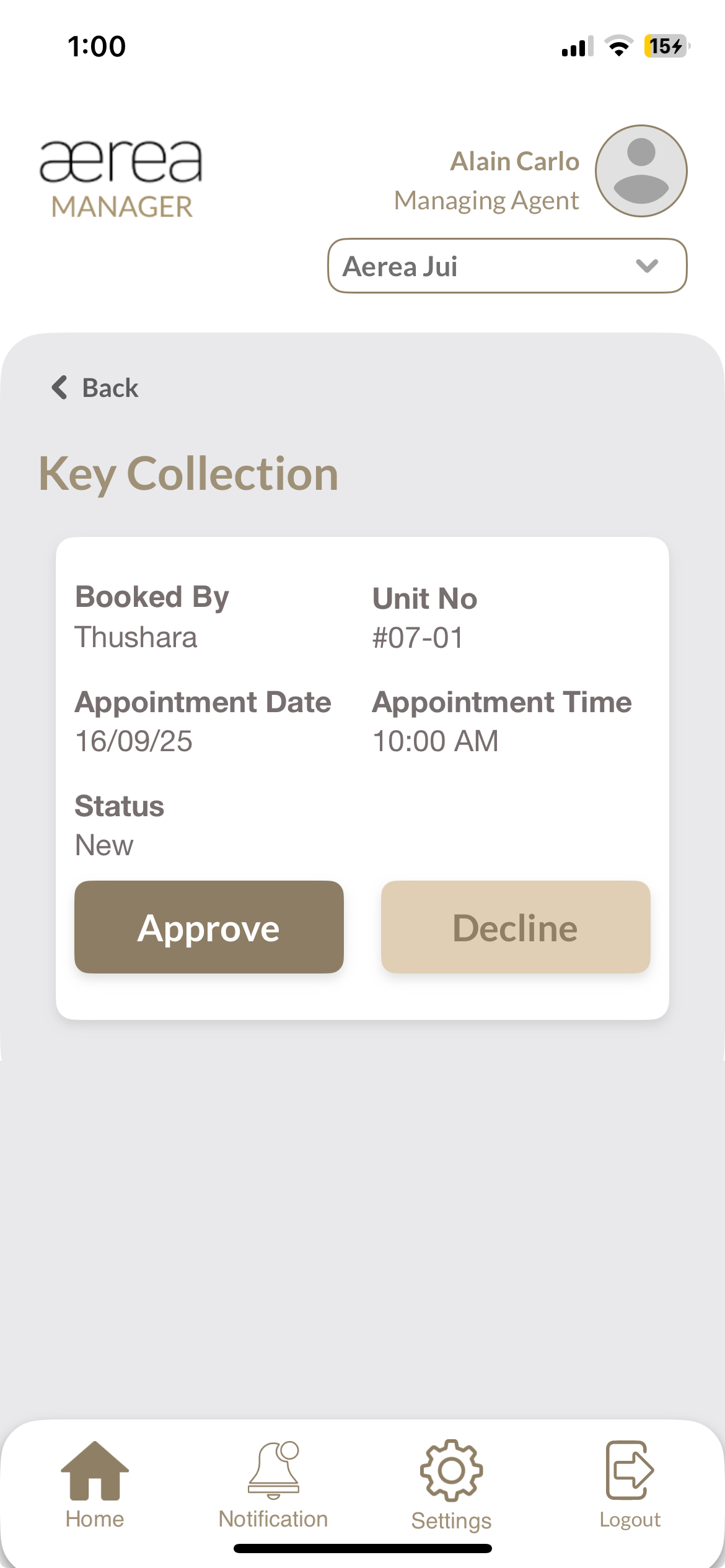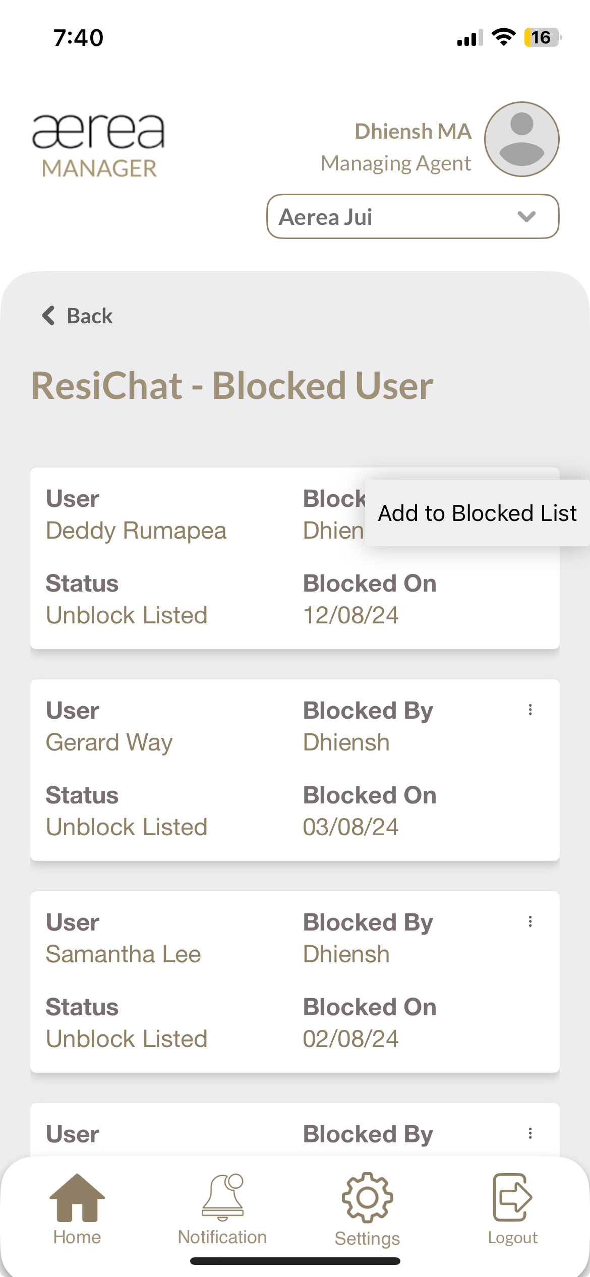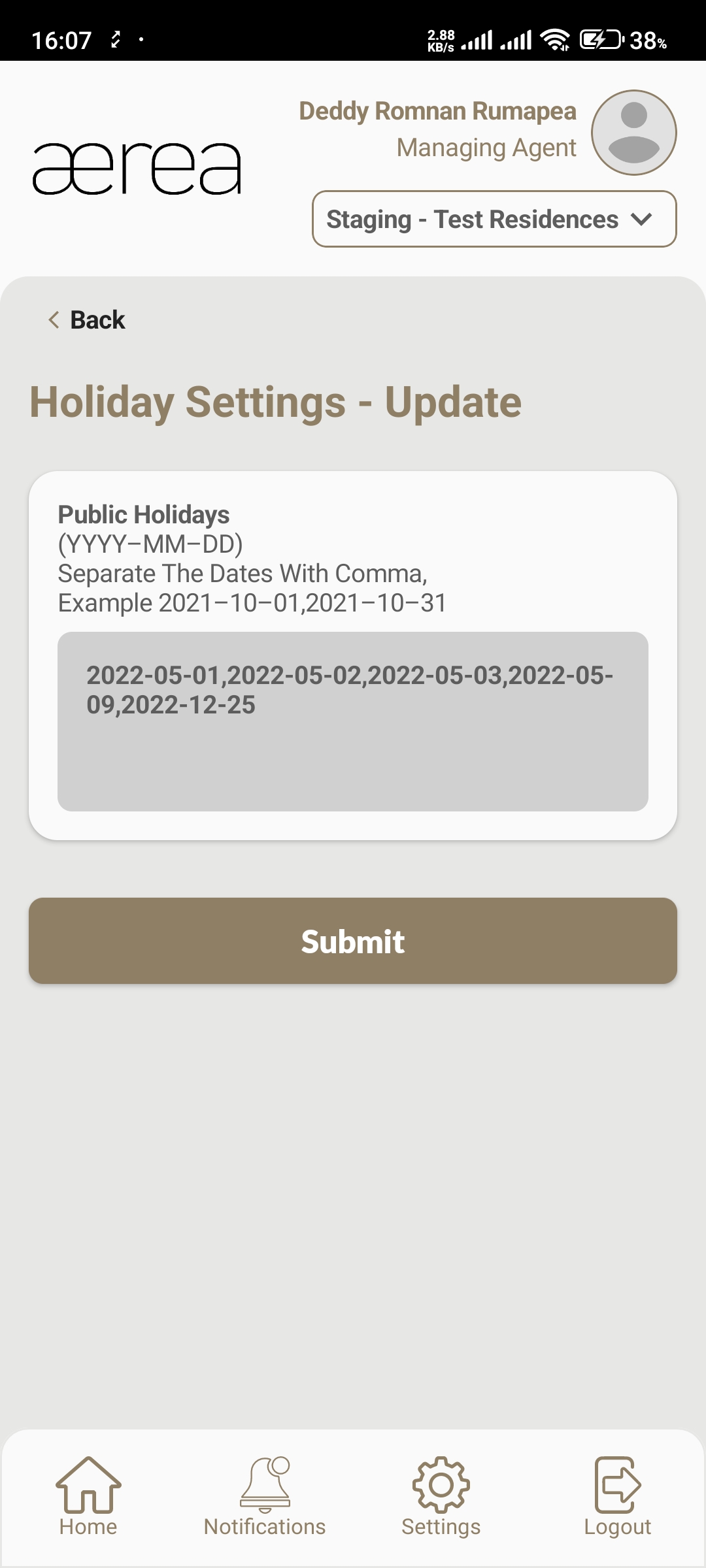 Users with managing roles can login via the Aerea Manager app. They can manage multiple properties with a single login. Select the country your condo is located in