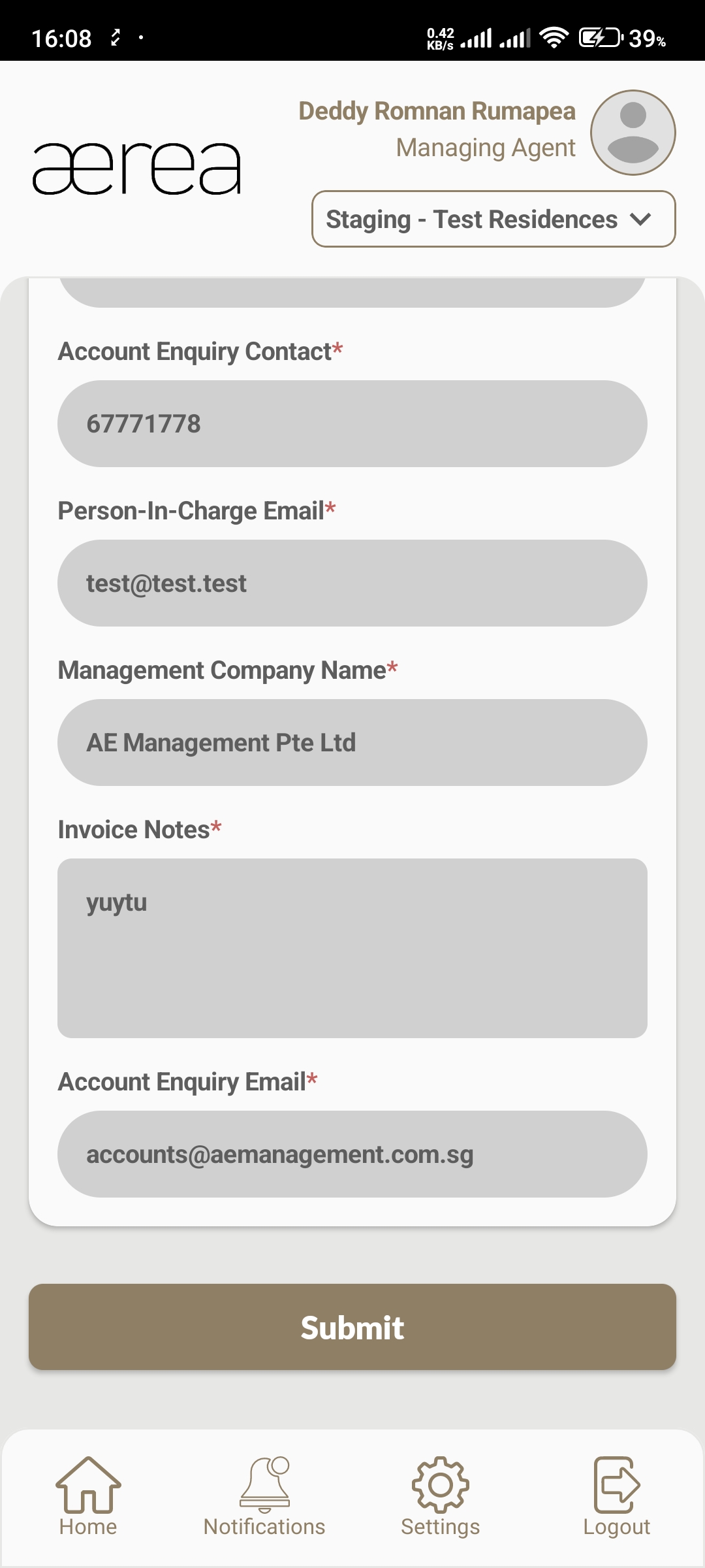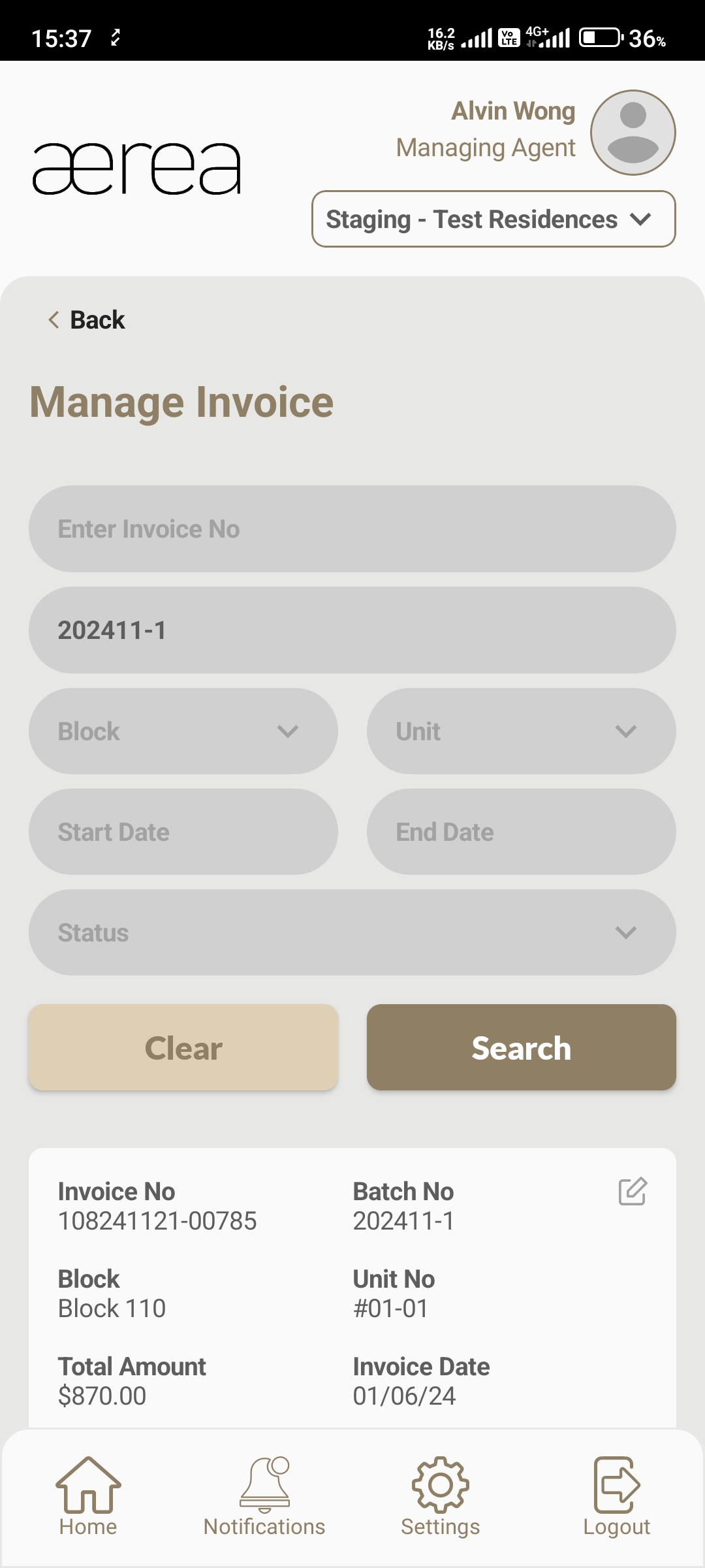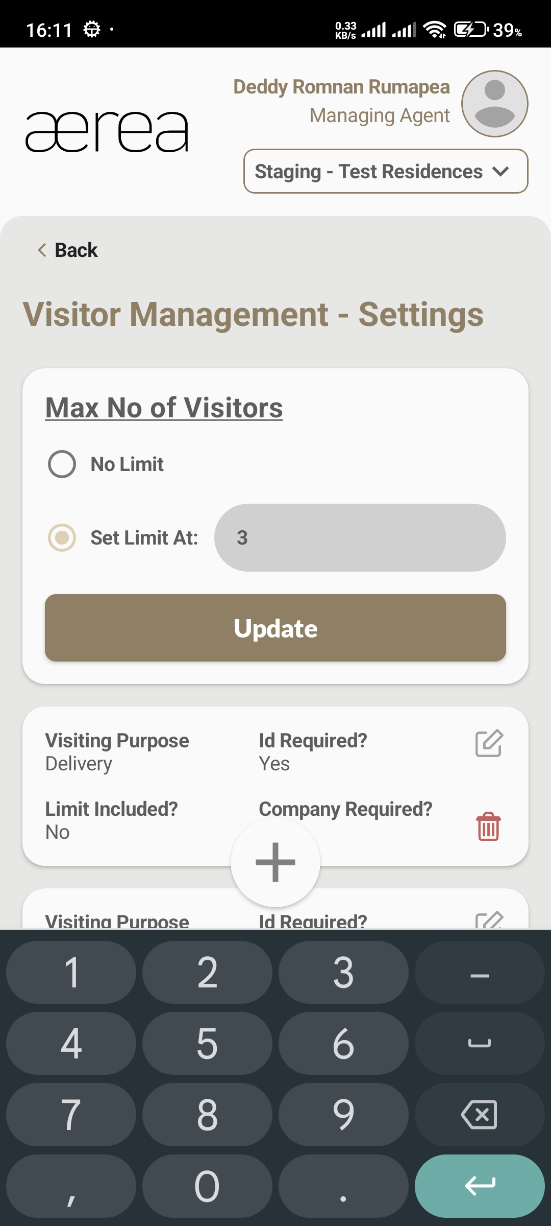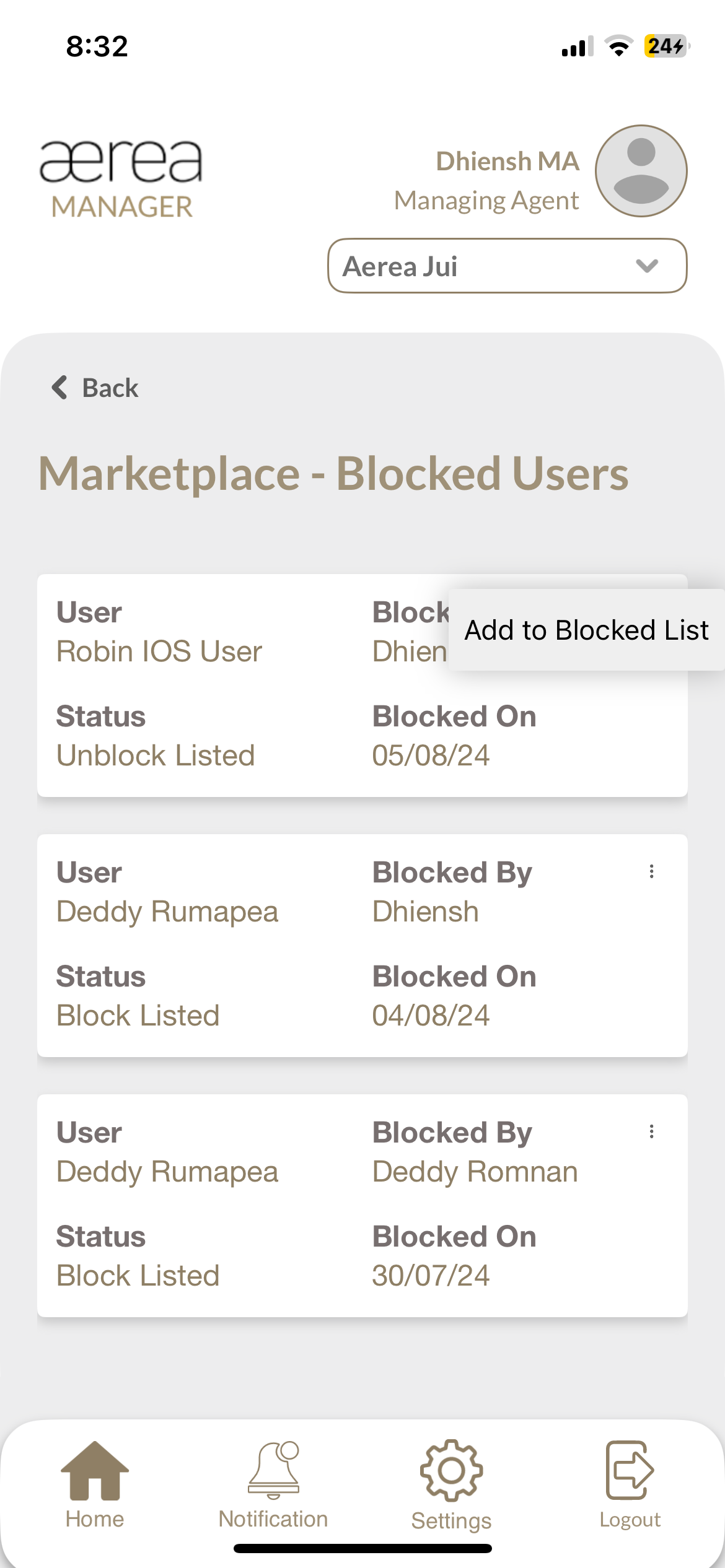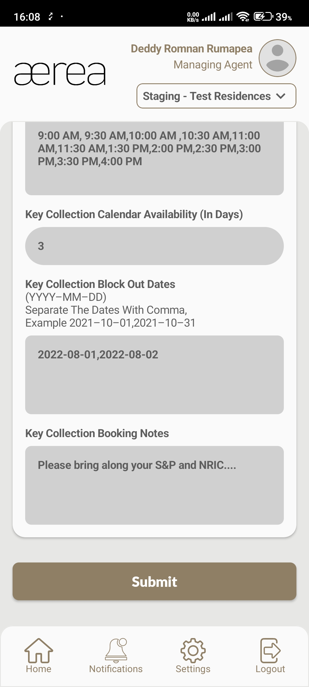 Users with managing roles can login via the Aerea Manager app. They can manage multiple properties with a single login. Select the country your condo is located in