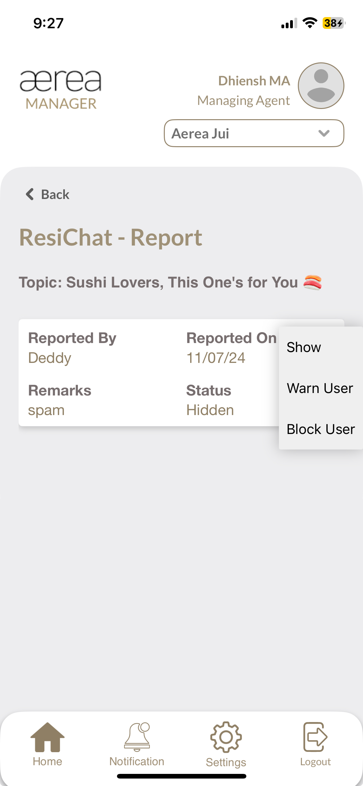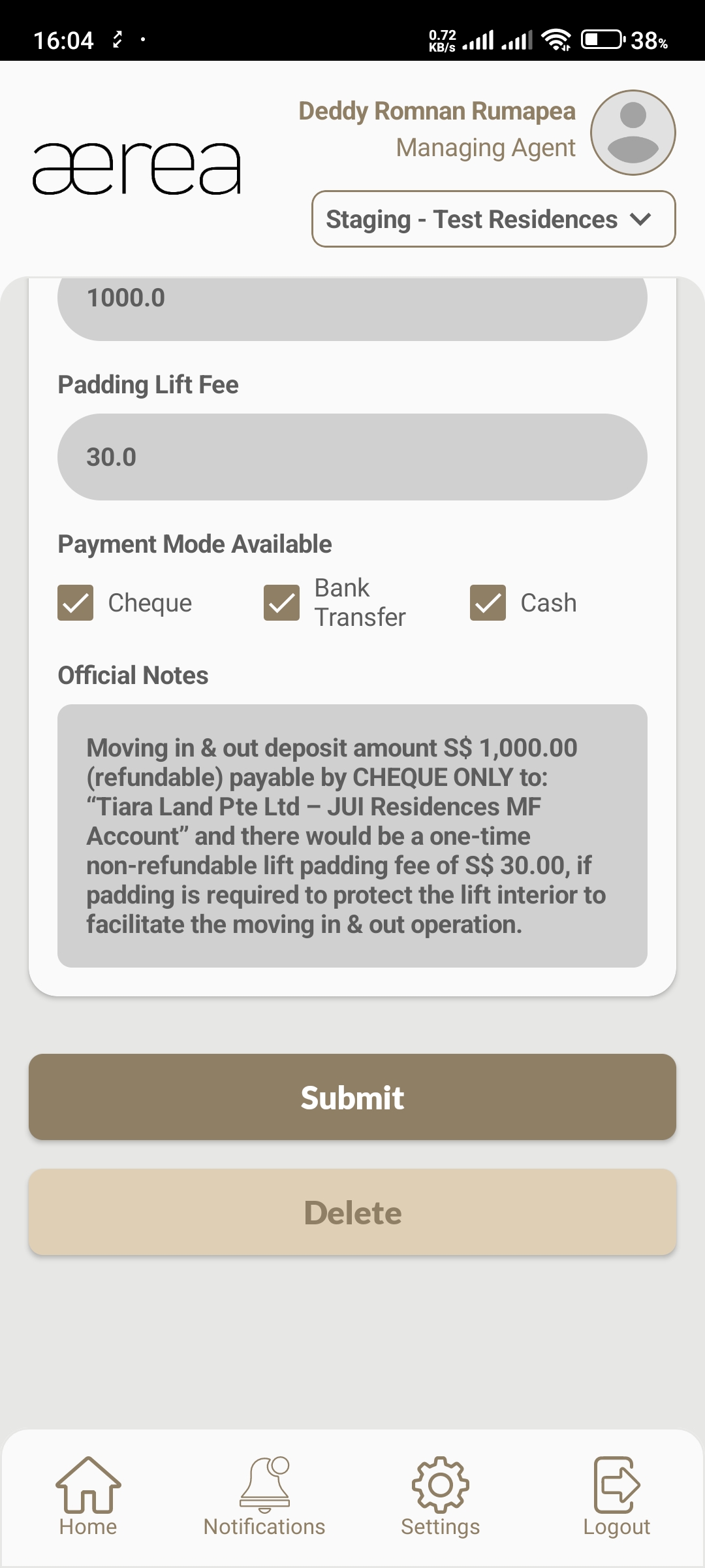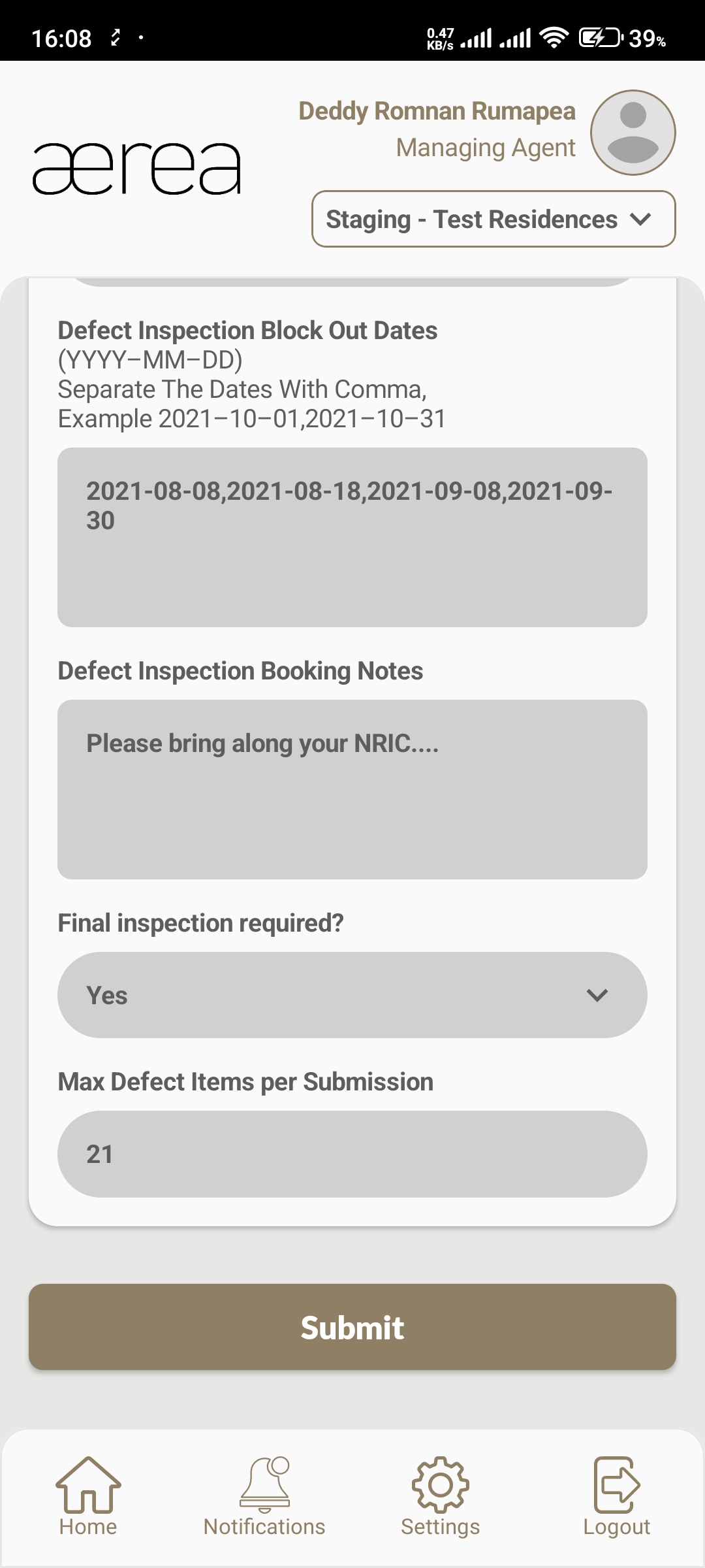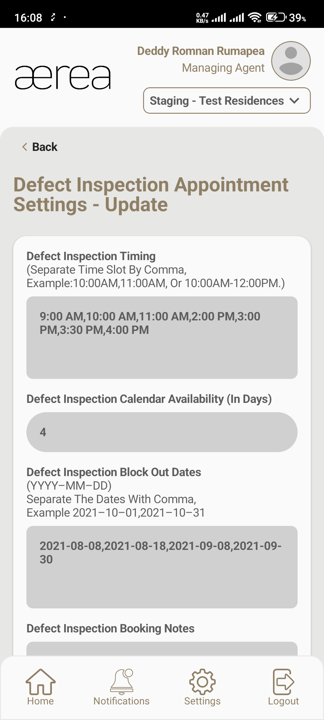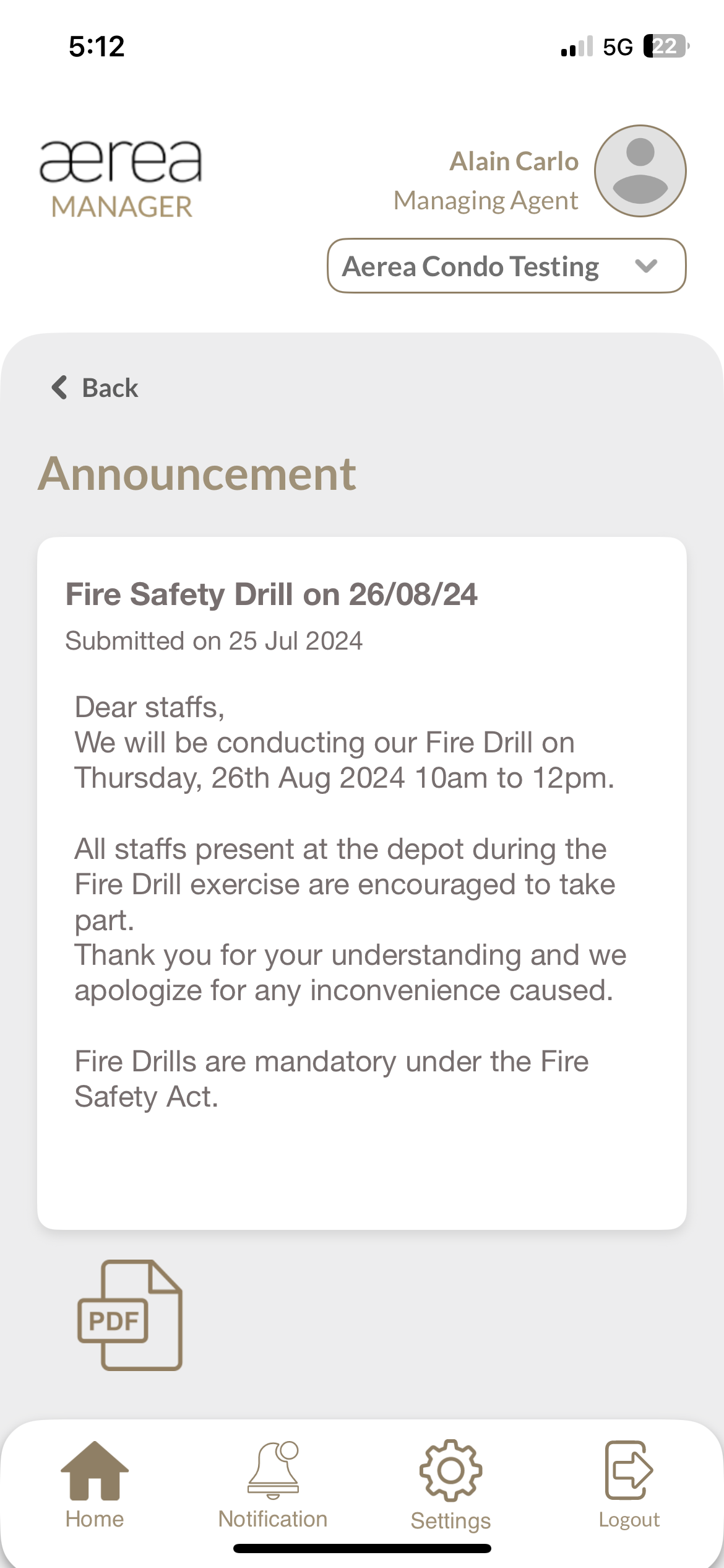 Users with managing roles can login via the Aerea Manager app. They can manage multiple properties with a single login. Select the country your condo is located in