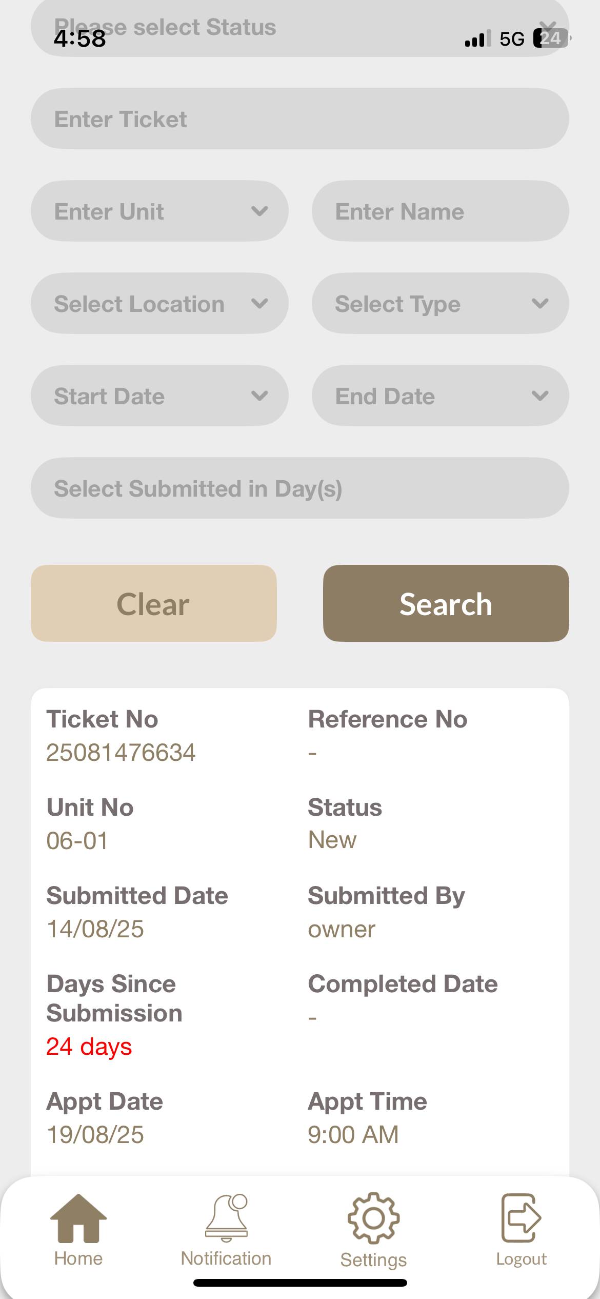 Type in the new password, then type it again in the Confirm Password field, and then tap on Submit